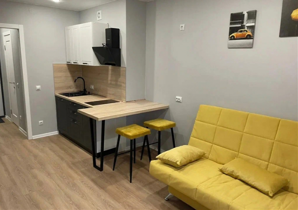 Сдается стильная квартира-студия с балконом. В квартире сделан евроремонт , вся мебель и техника новые. Кухонный гарнитур с барной стойкой и стульями, индукционная варочная панель, вытяжка, холодильник , стиральная машинка, раскладной двуспальный диван , в коридоре большой вместительный шкаф. Рядом с домом вся необходимая инфраструктура, удобная парковка. До метро пешком 20-25 минут. Без животных. Сдается на длительный срок.