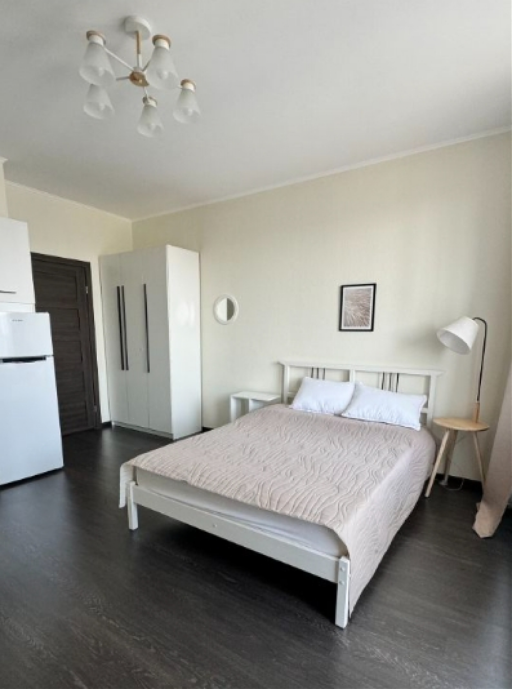 Сдается уютная студия для одного человека, Студия полностью укомплектована для комфортного проживания и удобства : посуда, холодильник, чайник , утюг, фен, телевизор , стиральная машина, гладильная доска, микроволновая печь, сушилка, ортопедический матрас Аскона и тд . Много мест для хранения.