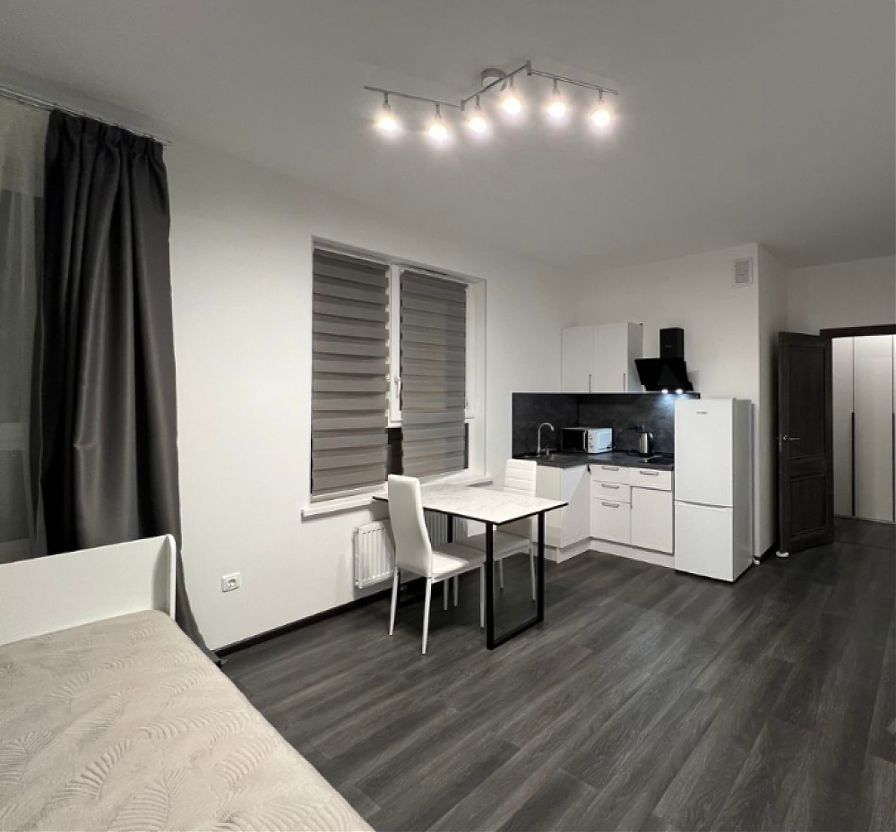 Сдается на длительный срок просторная и очень светлая студия .За счет трех окон можно прекрасно зонировать пространство. ЖК комфорт-класса, с закрытой, благоустроенной территорией, подземным паркингом. Квартира укомплектована всей необходимой техникой и мебелью: варочная панель, микроволновка, чайник, холодильник, стиральная машина, кровать с ортопедическим матрасом, вместительный шкаф в коридоре. Всё новое. Просторная лоджия — идеальное место для отдыха на свежем воздухе