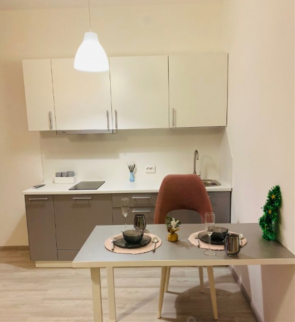 Студия с евроремонтом, оснащена всей необходимой мебелью и техникой для комфортного проживания: холодильник, телевизор, стиральная машина. Ванная комната оборудована душевой кабиной. Имеется балкон для приятного времяпрепровождения на свежем воздухе. Дом монолитно-кирпичный, с пассажирским и грузовым лифтами, а также наземной парковкой для вашего автомобиля. Жильцы дома могут пользоваться быстрым интернетом. Инфраструктура района отлично развита: в шаговой доступности находятся школы, детские сады, клиники и магазины.