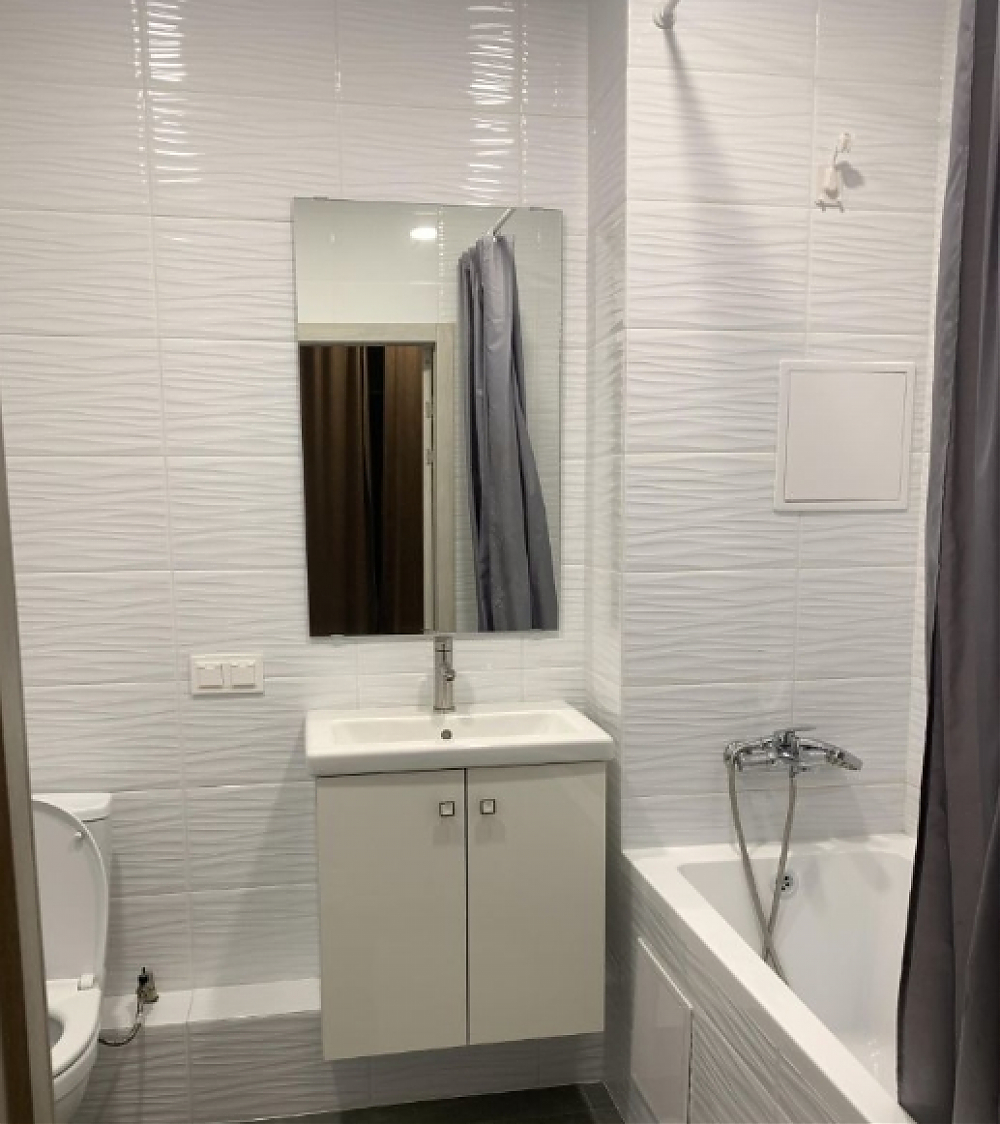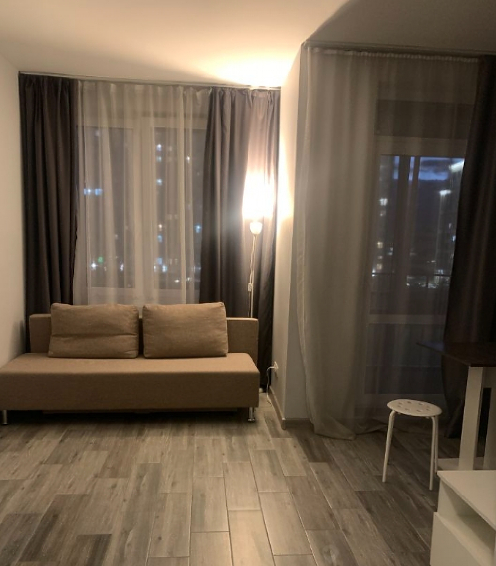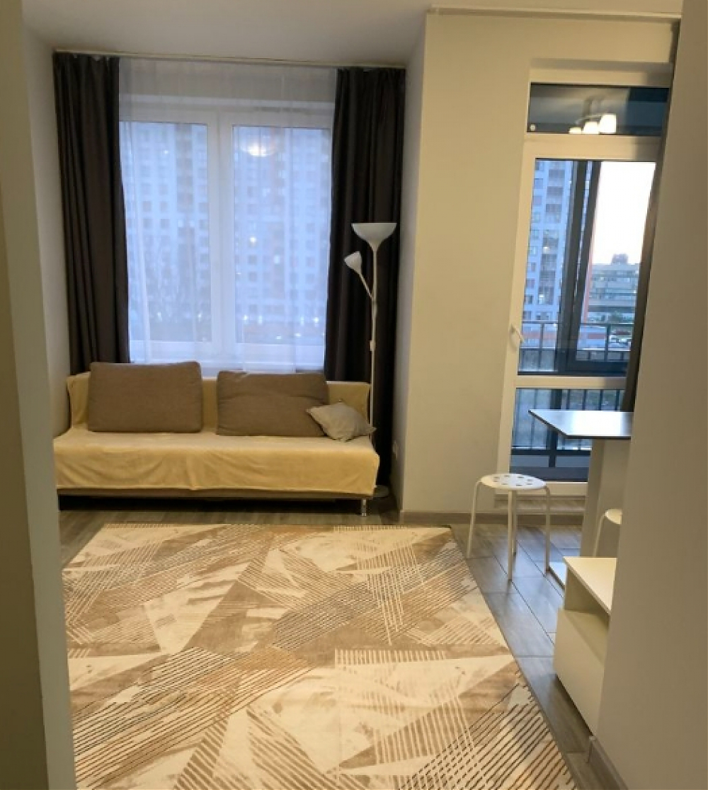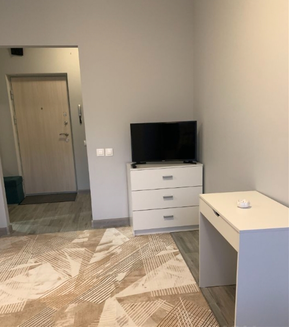 В квартире выполнен евроремонт, установлена современная мебель как на кухне, так и в комнате. Из техники есть всё необходимое для комфортного проживания: холодильник, телевизор и стиральная машина. Санузел совмещённый. Также есть выход на лоджию, что позволяет наслаждаться свежим воздухом в любое время года.