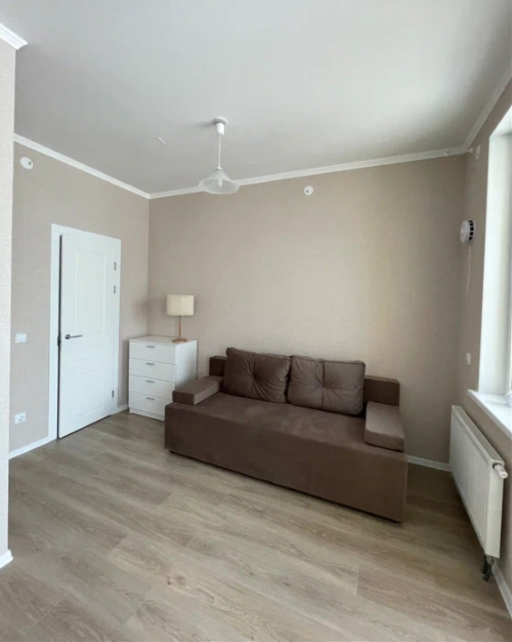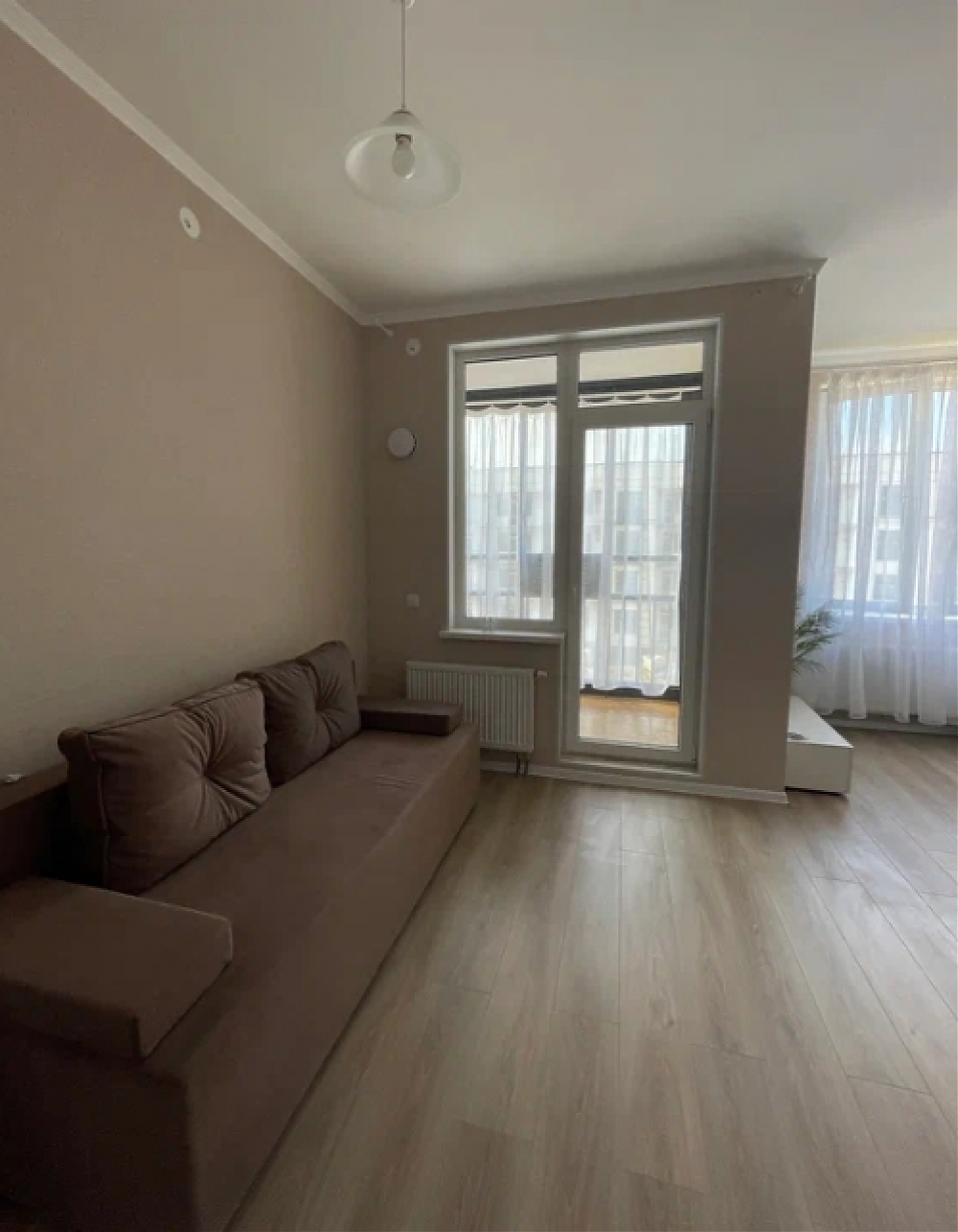 Сдаётся квартира студия в новом доме комфорт-класса ЖК "Любоград" Квартира сдаётся впервые. Всё новое. Квартира светлая, тёплая, чистая, располагается на 3-м этаже 4-х этажного дома. Евро-ремонт от застройщика. Пол-ламинат. Есть застеклённая лоджию, санузел совмещённый в кафеле. В квартире есть необходимая мебель и техника: 2-х спальный диван, маленький раскладной диван в кухонной зоне, гардеробная, холодильник, эл.плита, эл.чайник, стиральная машина, стол, комод.