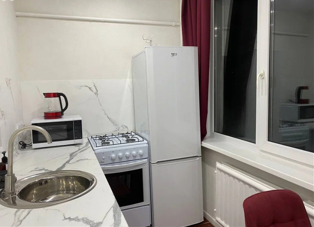 Сдаётся уютная однокомнатная квартира с новым ремонтом в тихом районе. Общая площадь составляет 33 кв. м, из которых жилая площадь — 18,5 кв. м, а кухня — 6,5 кв. м. Квартира расположена на 1 этаже 9-этажного дома. До метро можно дойти пешком всего за 11 минут (можно дойти также через дворы за 7 минут). Окна выходят на закрытую придомовую территорию засаженную деревьями. От окон до проезжай части примерно 30 м. В квартире есть вся необходимая техника для комфортного проживания: холодильник, газовая плита, микроволновка, чайник, стиральная машинка. Также вся необходимая для проживания мебель (представлена на фото). Рядом с домом большой выбор магазинов в шаговой доступности, а также пекарни, аптеки. Отличная транспортная инфраструктура - рядом с домом находится остановка общественного транспорта. Также рядом с домом находится красивый парк с прудом.