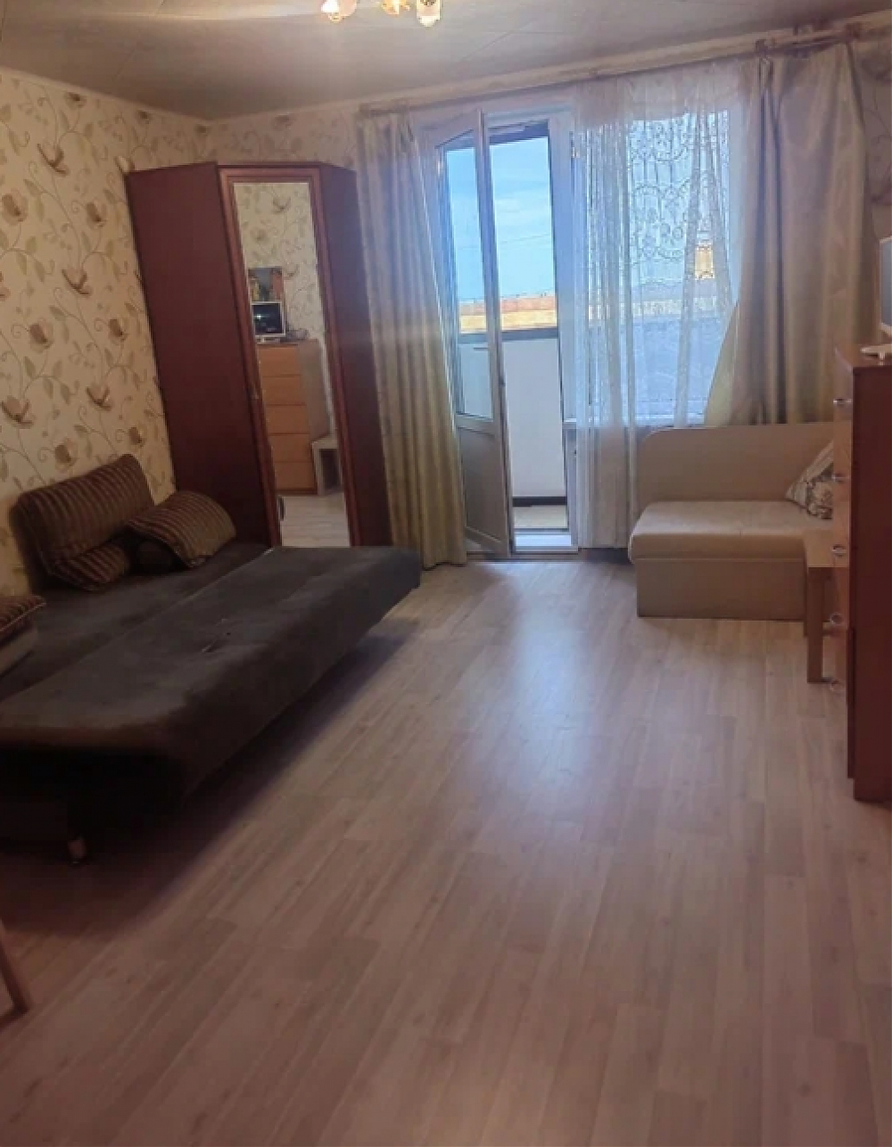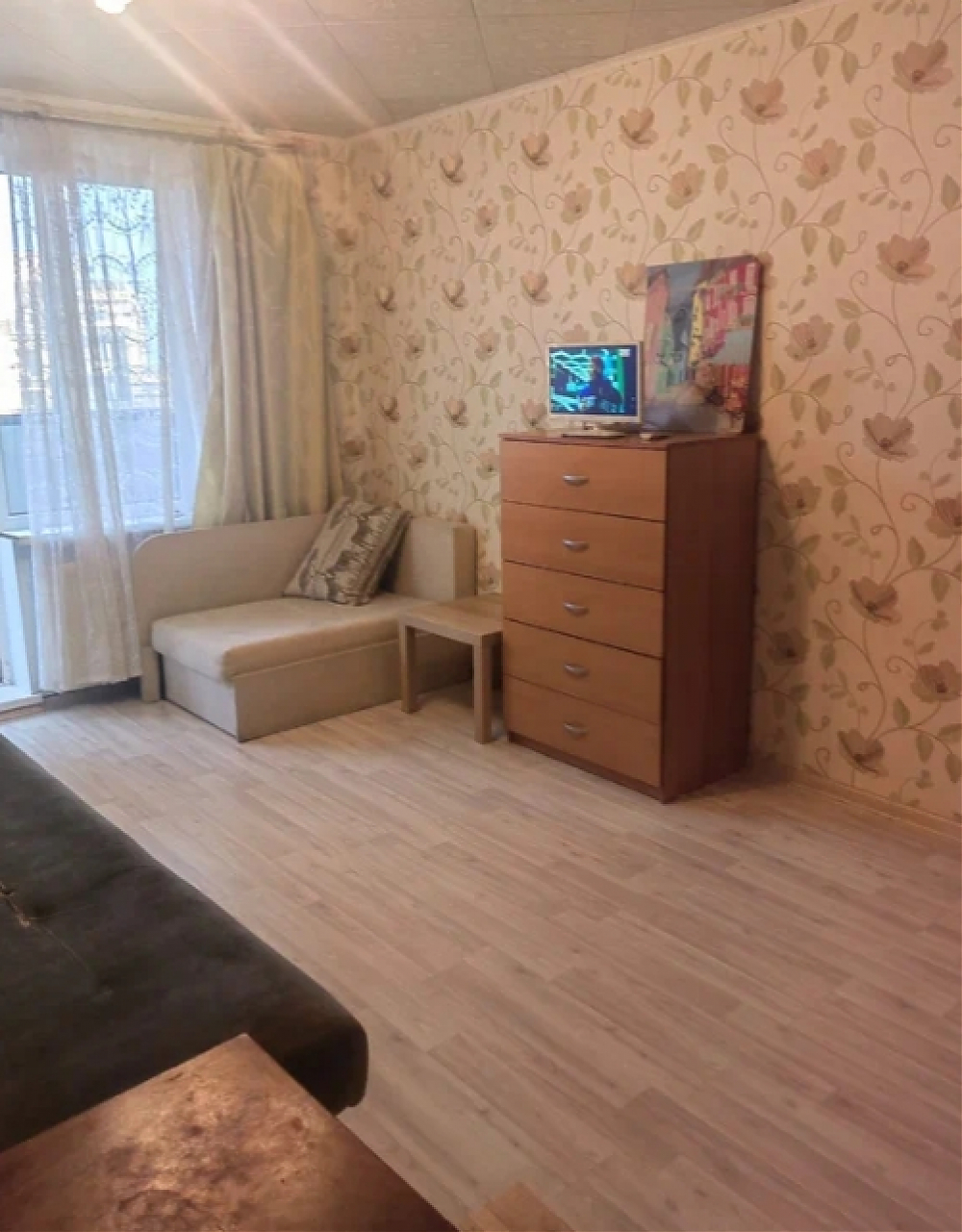 На длительный срок сдается большая светлая студия, 31 м2 в спальном районе Есть стиральная машина, ТВ, новые холодильник и микроволновка.