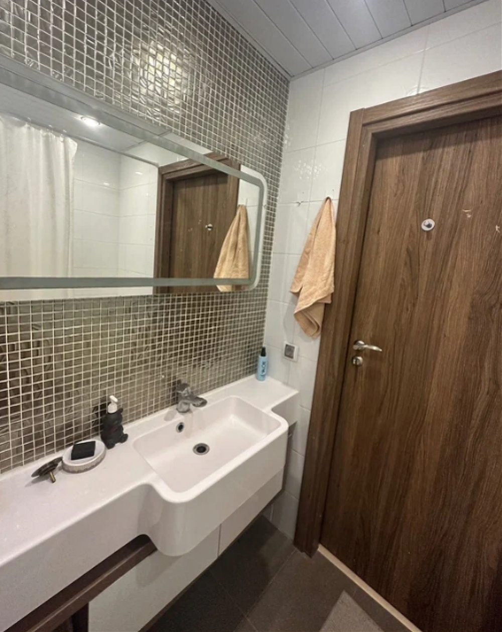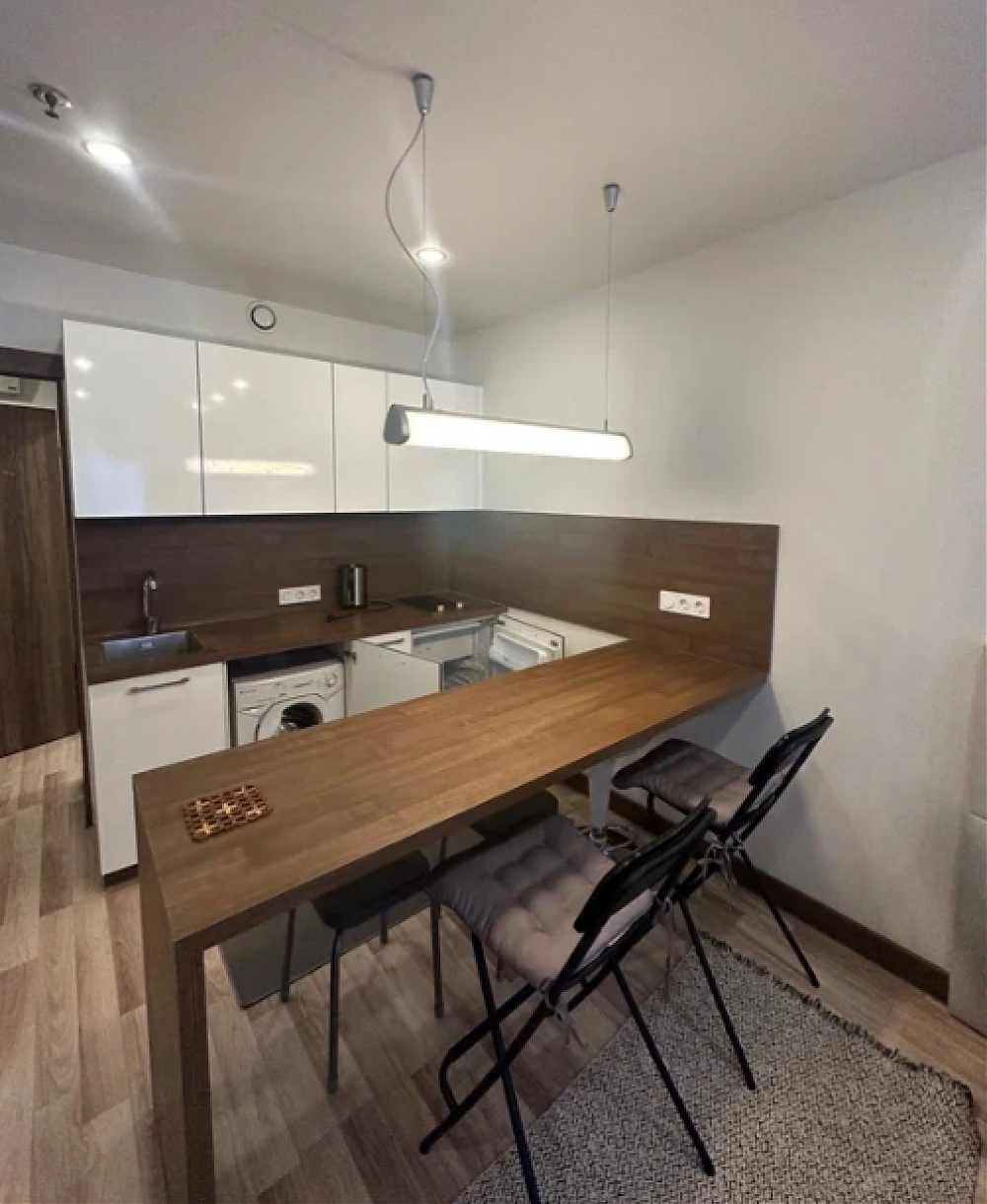В квартире есть большая двуспальная кровать, отдельная рабочая зона — удобно для удалённой работы. Кухня оборудована плитой, микроволновкой, есть стиральная машина. Большие шкафы для хранения, телевизор, Wi-Fi. Дом расположен в районе с развитой инфраструктурой: множество магазинов, кафе и необходимых сервисов. Хорошо развит общественный транспорт, рядом много остановок. До метро 8 минут пешком.