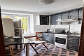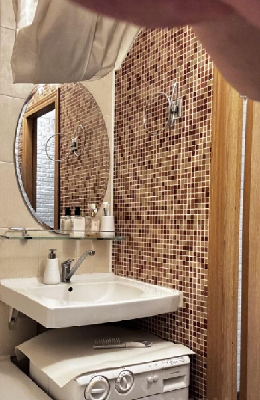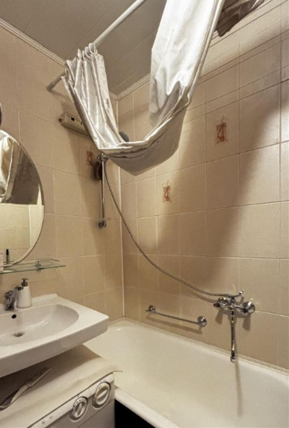 В квартире сделан косметический ремонт. Необходимая мебель, холодильник, микроволновая печь, духовой шкаф (газ), плита (газ), мини мультиварка, телевизор и стиральная машина. Ванная комната оборудована ванной, санузел совмещенный. Дом в хорошем состоянии, с парковкой обычно нет проблем.