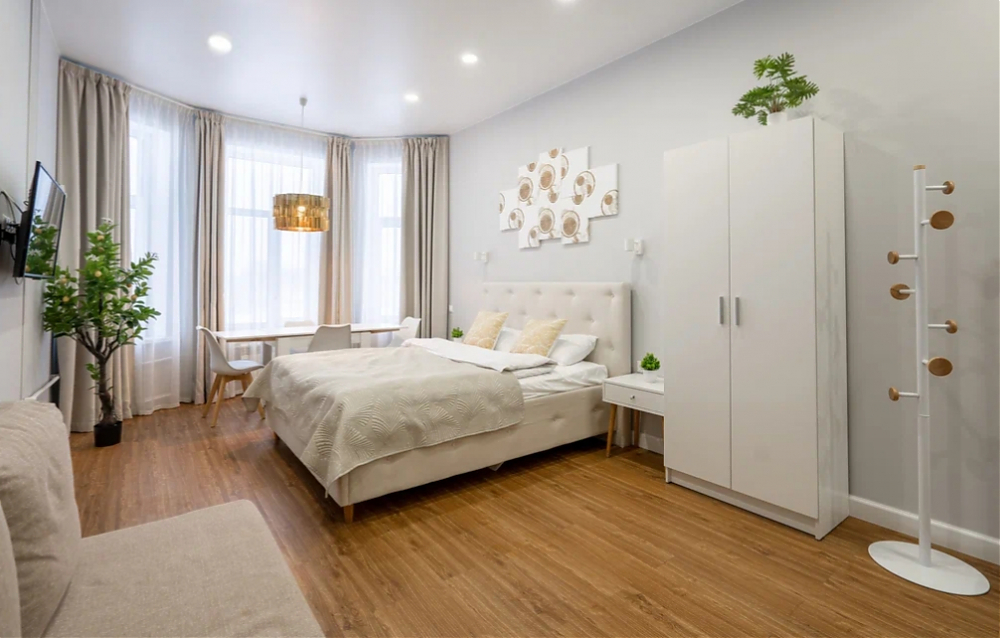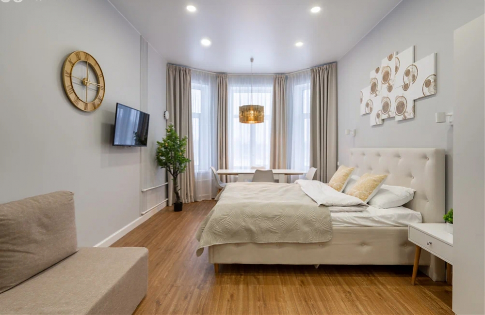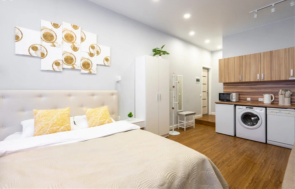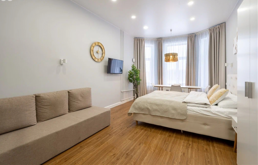 Это студия с окнами Неву, общей площадью 29 кв.метров, совмещенным санузлом с душем (без ванны), находится на 4 этаже семиэтажного дома (без лифта), квартира полностью оснащена всей необходимой техникой: холодильник, индукционная плита, телевизор, микроволновая печь, стиральная машина, посудомоечная машина, утюг, чайник, естественно wi-Fi. Так же есть вся необходимая посуда и пастельное белье. В остальном все в точности как на фото. Рядом метро Черная речка и проход на Крестовский остров через ЦПКиО. У дома очень удобная, большая и бесплатная паковка,