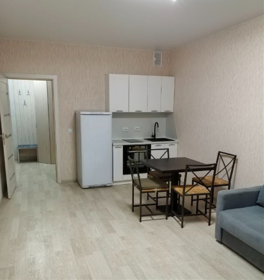 Квартира студия. В квартире есть лоджия. Спальное место- диван-кровать, ширина 140см. Техника:стиральная машина, холодильник, микроволновая печь, духовой шкаф, индукционная плита на 2 комфорки, электрочайник, телевизор. На кухне есть минимальный набор посуды: тарелки, вилки, ложки, кружки. Интернет будет проведен в ближайшее время. Санузел совмещенный. В квартире еще никто не жил, новая, после ремонта от застройщика. Рядом развитая инфраструктура, магазины, аптеки.