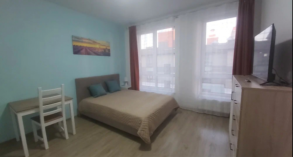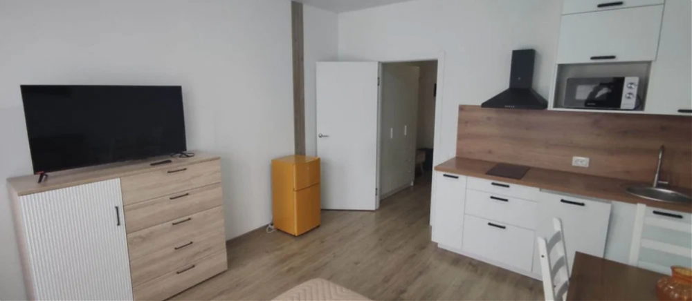 Новая студия в Невском районе в современном апарт-отеле «Начало» недалеко от метро Ломоносовская, на берегу Ивановского карьера. Студия с новым ремонтом, мебелью и техникой.