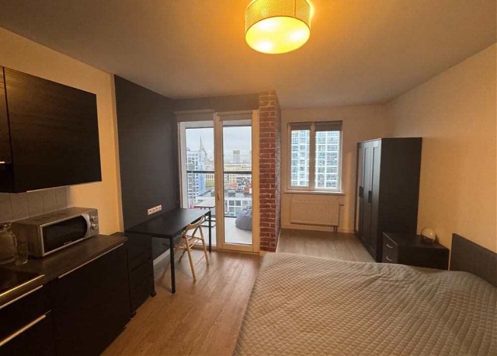 Сдаётся просторная студия с большой лоджией и видом на Финский залив.Расположение: Современный жилой комплекс с закрытым двором и охраной. Во дворе — нет машин, тихо и безопасно.
