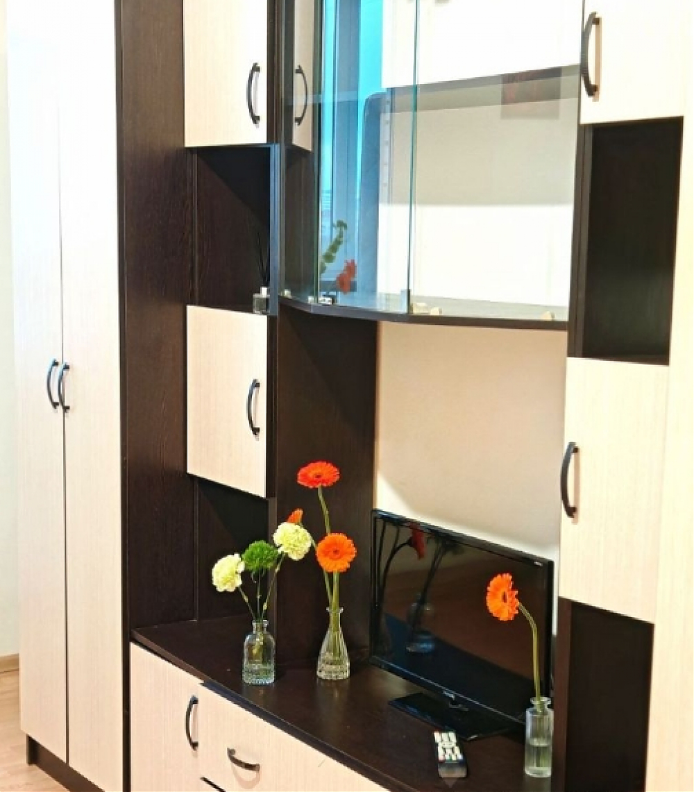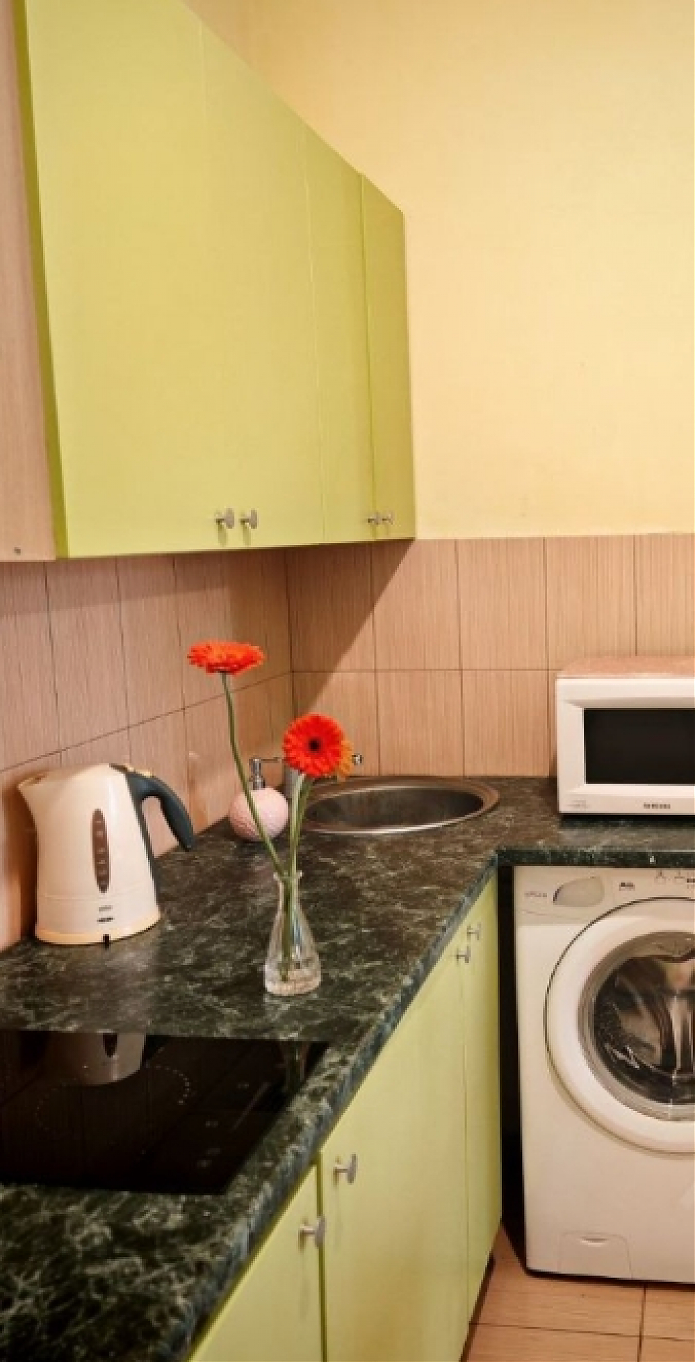 Студия расположена на высоком этаже и обладает просторным балконом. До трех станций метро можно дойти пешком. Комплекс относится к комфорт-классу и предлагает охраняемую территорию, бесплатный закрытый паркинг, а также услуги консьержа. Студия полностью укомплектованыюа необходимой бытовой техникой: холодильник, СВЧ-печь, стиральная машина, стеклокерамическая варочная панель, электрочайник, утюг, сушилка для белья. Подклбюючены проводной интернет и домофон.