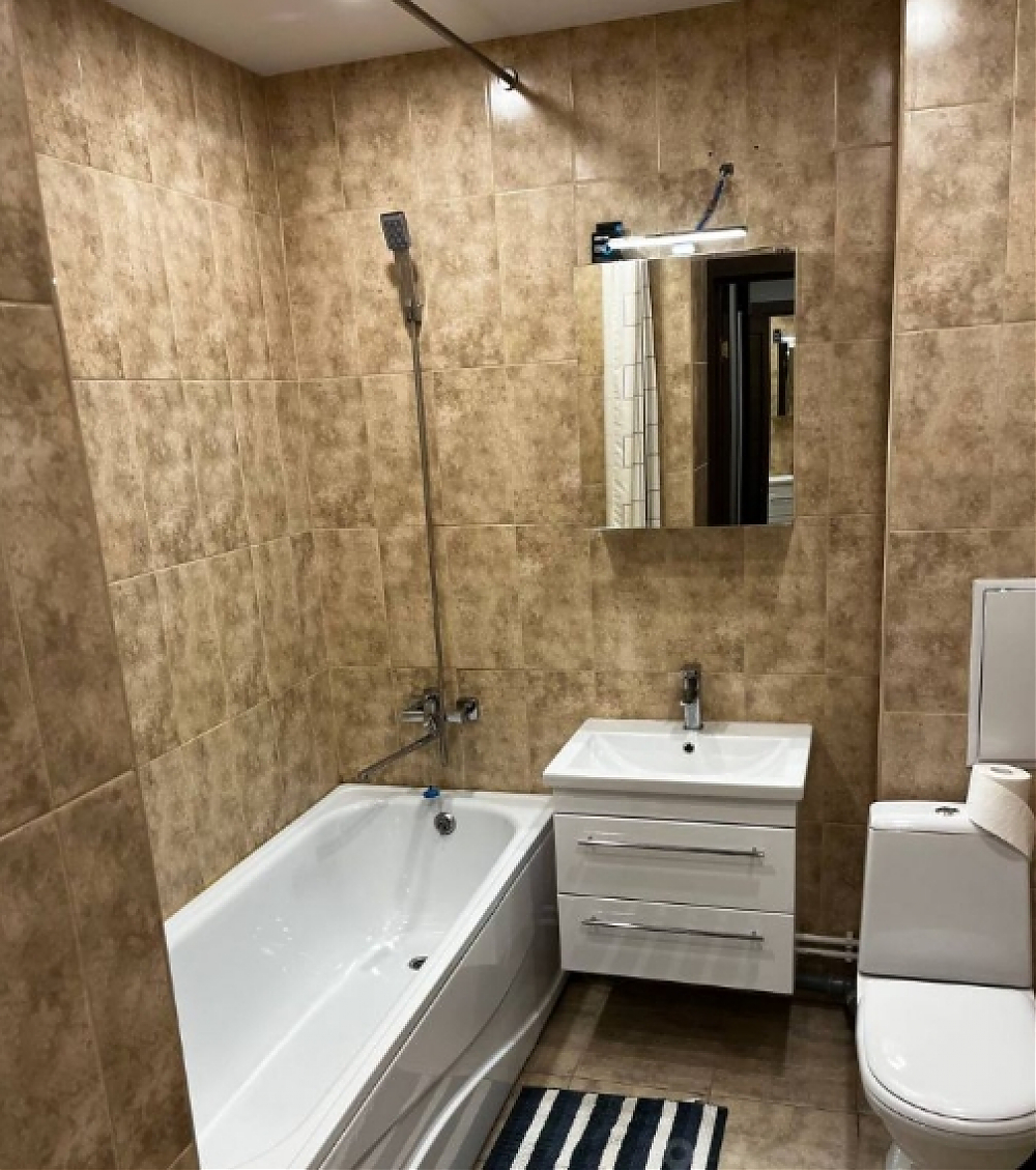 Уютная квартира-студия с хорошим ремонтом и качественной мебелью. Сдается в первый раз, до этого жил собственник, все делалось для собственного комфорта. Полноценное спальное место (кровать 140х200), полноценная кухня с индукционной варочной панелью и духовым шкафом, большая ванна. Входная дверь заменена на новую качественную с лучшей шумоизоляцией. Рядом в пешей доступности есть все необходимые удобства: магазины, аптеки. В скором времени будет пущен автобус с остановкой буквально в паре минут от дома.