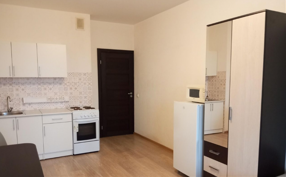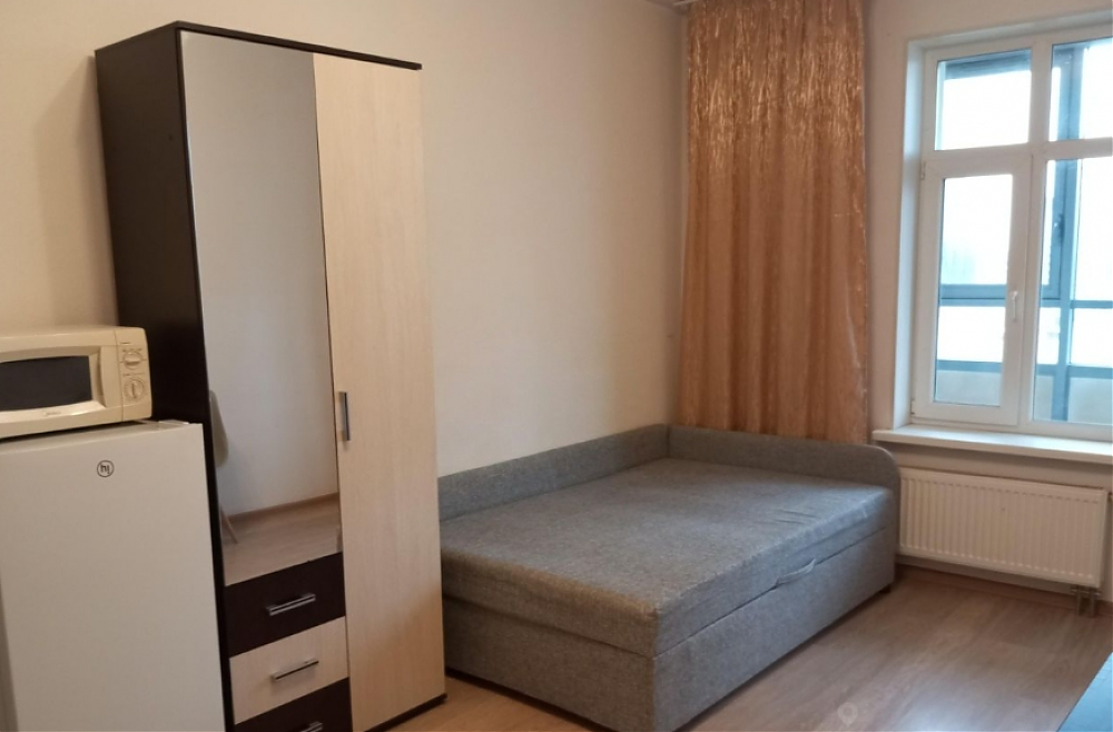 Сдается уютная студия. Сделан косметический ремонт, установлена новая кухня и сантехника. Окна выходят на запад, панорамный вид. Дом в отличном состоянии, оснащен пассажирским и грузовым лифтами. Для автолюбителей предусмотрена подземная парковка и парковка во дворе дома. В шаговой доступности находятся школы и детские сады, поликлиники. Магазины рядом, а до метро можно дойти пешком за 20-25 минут.
