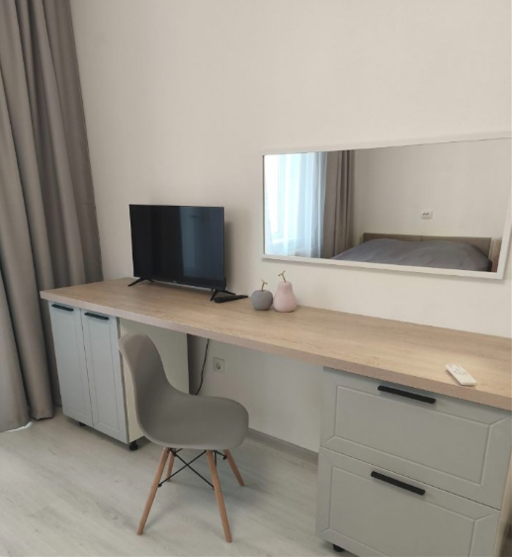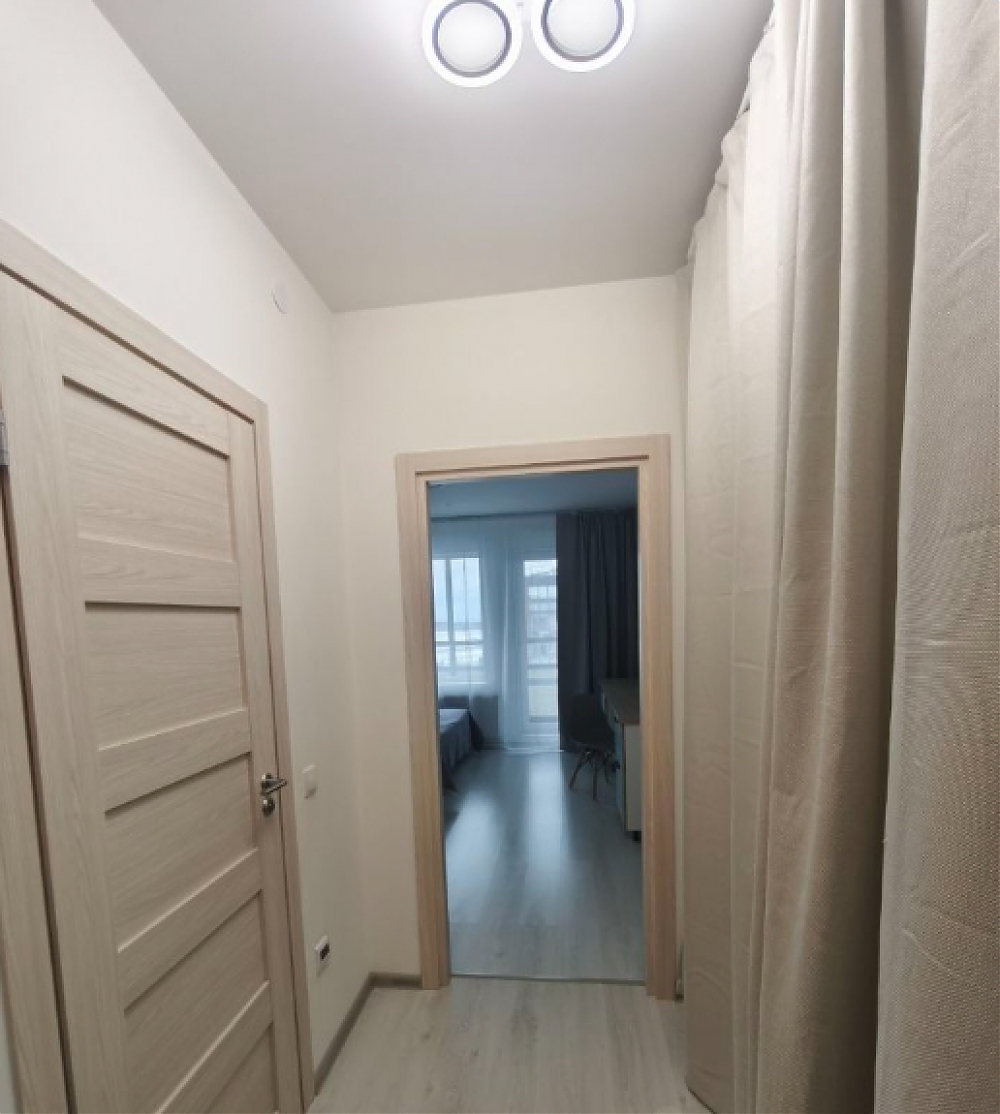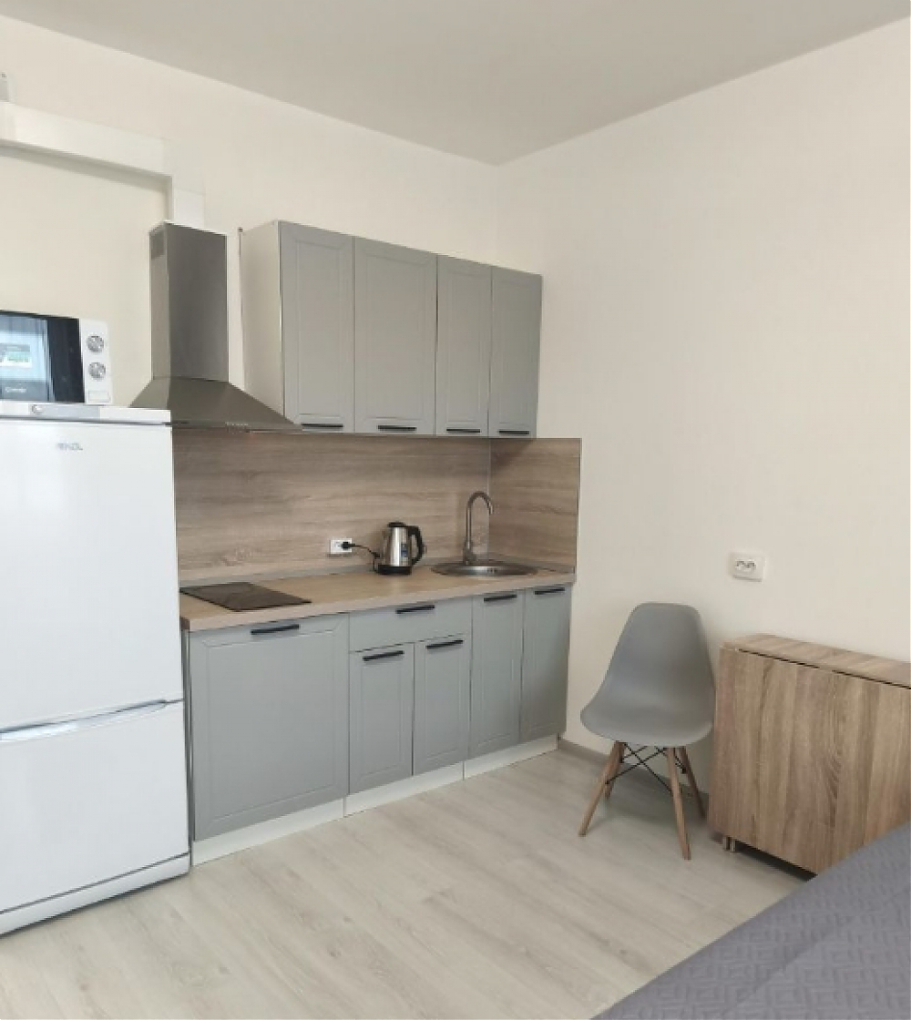 Сдается уютная студия в доме 2022 года постройки. В квартире есть кухонный уголок с необходимой техникой, двухспальная кровать, мультиварка, микроволновая печь. В прихожей оборудована большая гардеробная. В пешей доступности автобусная остановка и ж/д станция.