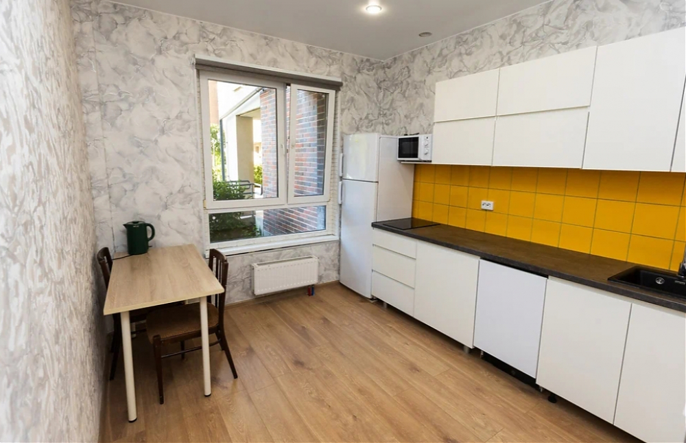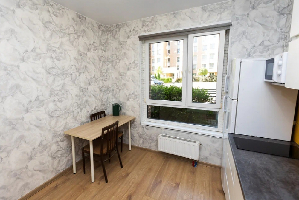 В квартире сделан ремонт. Новая кухня. Сдаётся чистоплотным, не курящим и ответственным квартиросъёмщикам. Без животных. На длительный срок. Сдаётся уютная, светлая однокомнатная квартира в жилом комплексе комфорт класса "Английская Миля" В квартире есть всё необходимое для проживания: индукционная плита, холодильник, стиральная и посудомоечная машина, шкаф-купе, двухместная кровать с новым матрасом, посуда. Интернет. Видеонаблюдение, закрытый двор.