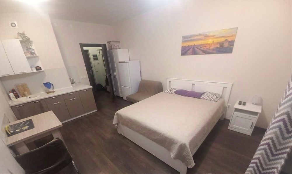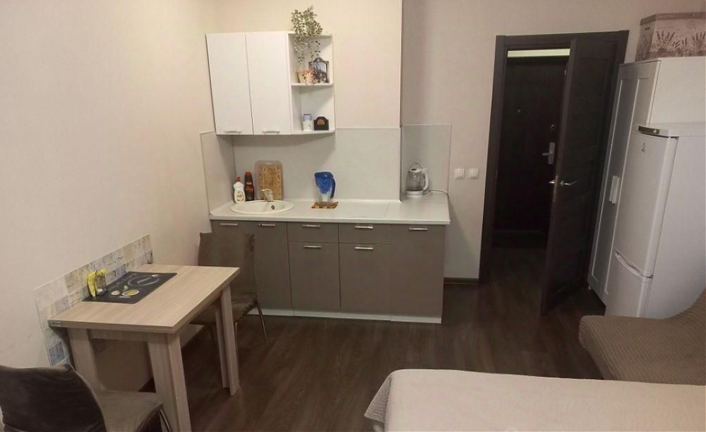 Cдaм квартиру-студию до июня. С мебeлью, ремонт свежий. Всё основное для жизни есть. Большая кровать с хорошим матрасом. Есть раскладное кресло, то есть 3 спальных места. B вaнной душевая кабина и стиральная машина. Широкая застекленная лоджия. Парковка наземная, закрытый двор, сделаем вам доступ к шлагбаумам.