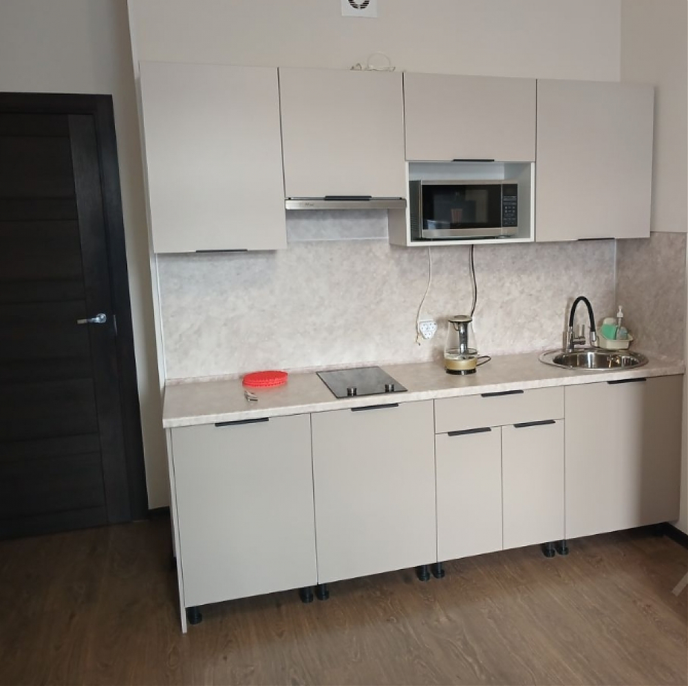 Квартира студия после косметического ремонта. В студии новая мебель и техника. Дом расположен в 5 минутах ходьбы от остановки общественного транспорта с которой можно добраться до м. Комендантский пр., Чёрная речка и Петроградская.
