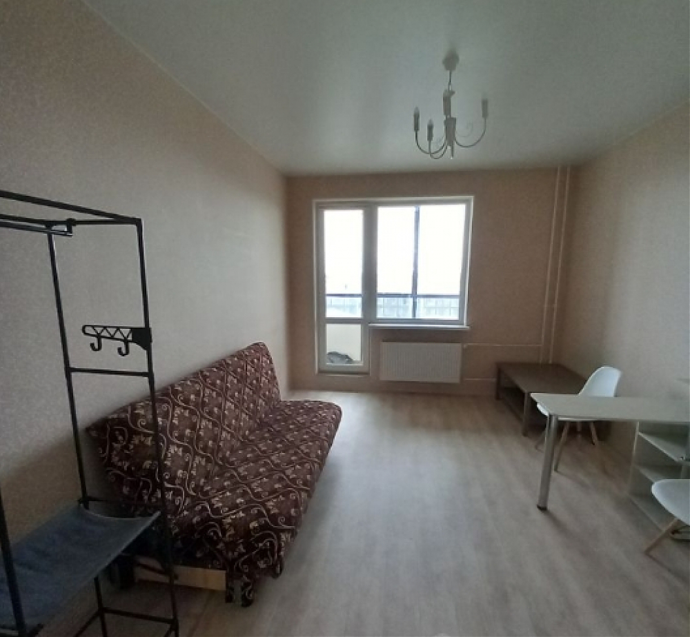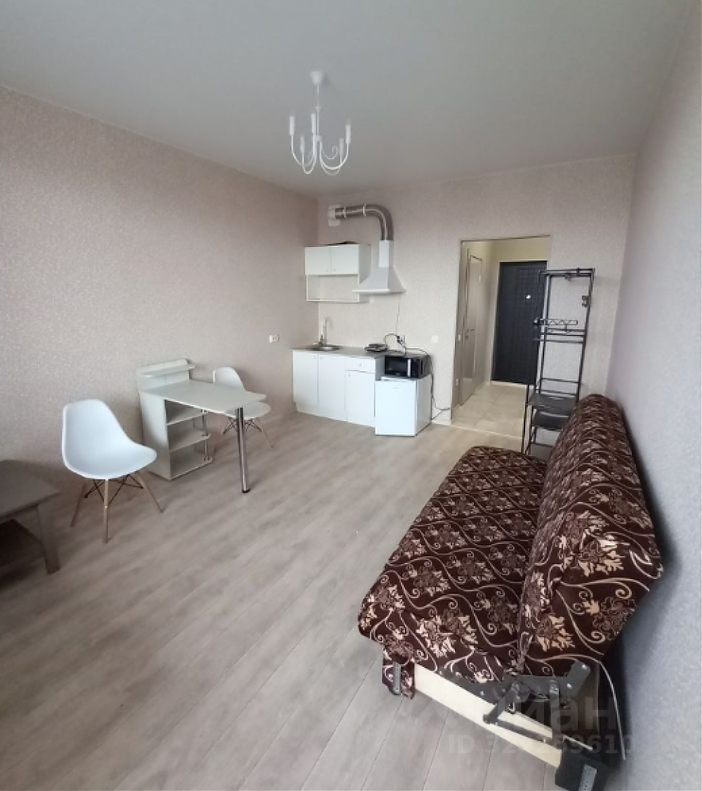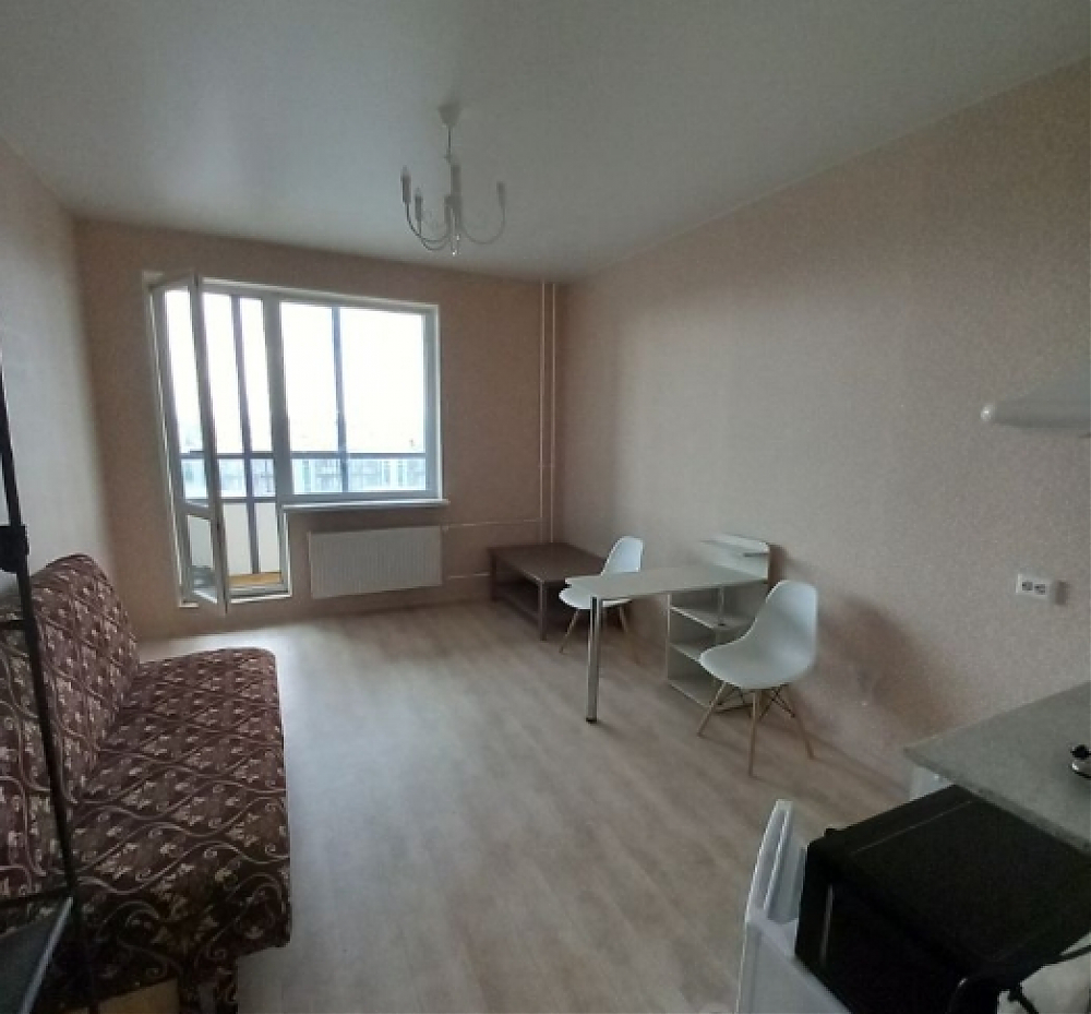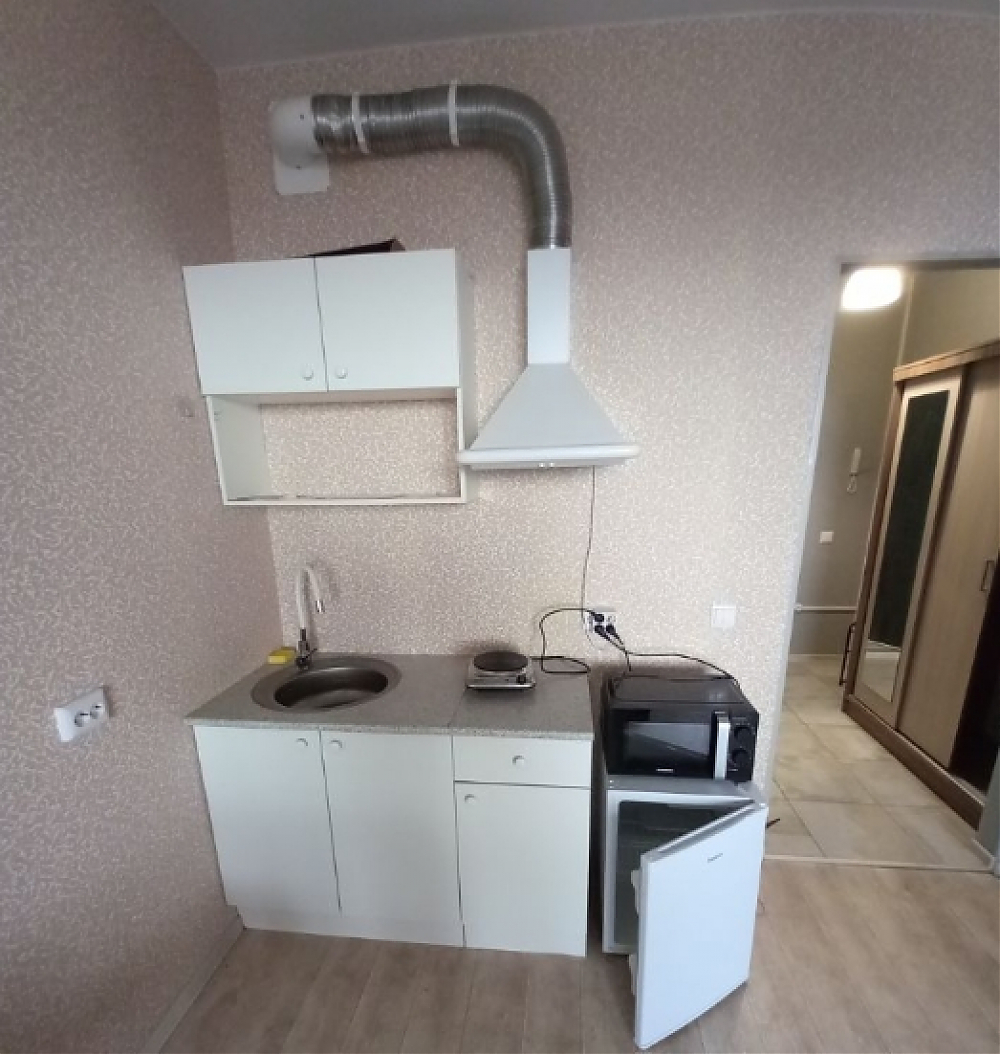 Сдаётся на длительный срок студия. Для хранения вещей шкаф трёхстворчатый и открытая вешалка. Спальное место - раскладной диван книжка с шириной спального места 120 см. Бытовая техника: стиральная машина и небольшой холодильник, для приготовления пищи плитка и микроволновка. Есть кухонный столик, небольшой кухонный гарнитур, журнальный столик и стулья. всё что представлено на фото и видео, соответствует реальности. Квартира чистая, ремонт был 3 года назад.
