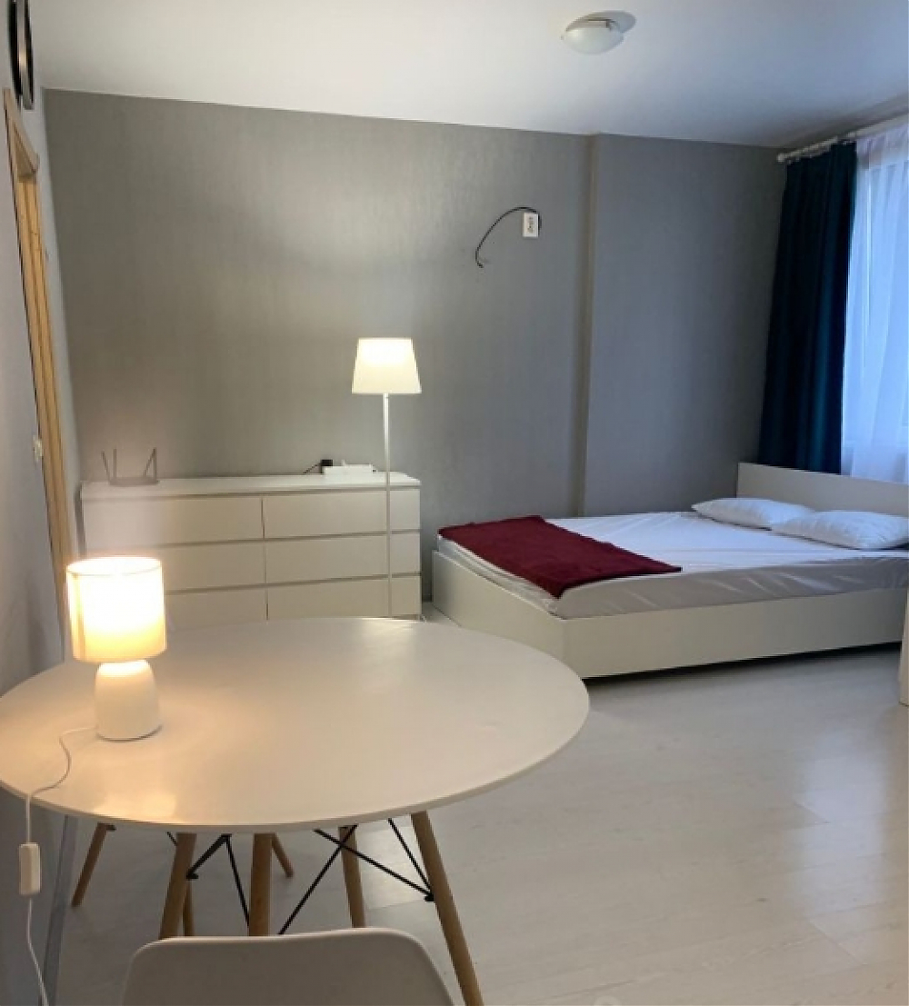 Сдаётся уютная студия в современном жилом комплексе . Квартира расположена на 8-м этаже 18-этажного монолитного дома, построенного в 2016 году. Площадь студии составляет 28 кв. м, а высота потолков — 2,7 метра. Окна выходят во двор, поэтому в квартире тихо и спокойно. В квартире выполнен косметический ремонт, есть вся необходимая мебель как на кухне, так и в комнате. Для вашего комфорта установлены холодильник и стиральная машина. Ванная комната оборудована душевой кабиной и совмещенным санузлом. Также имеется лоджия, где можно наслаждаться свежим воздухом.