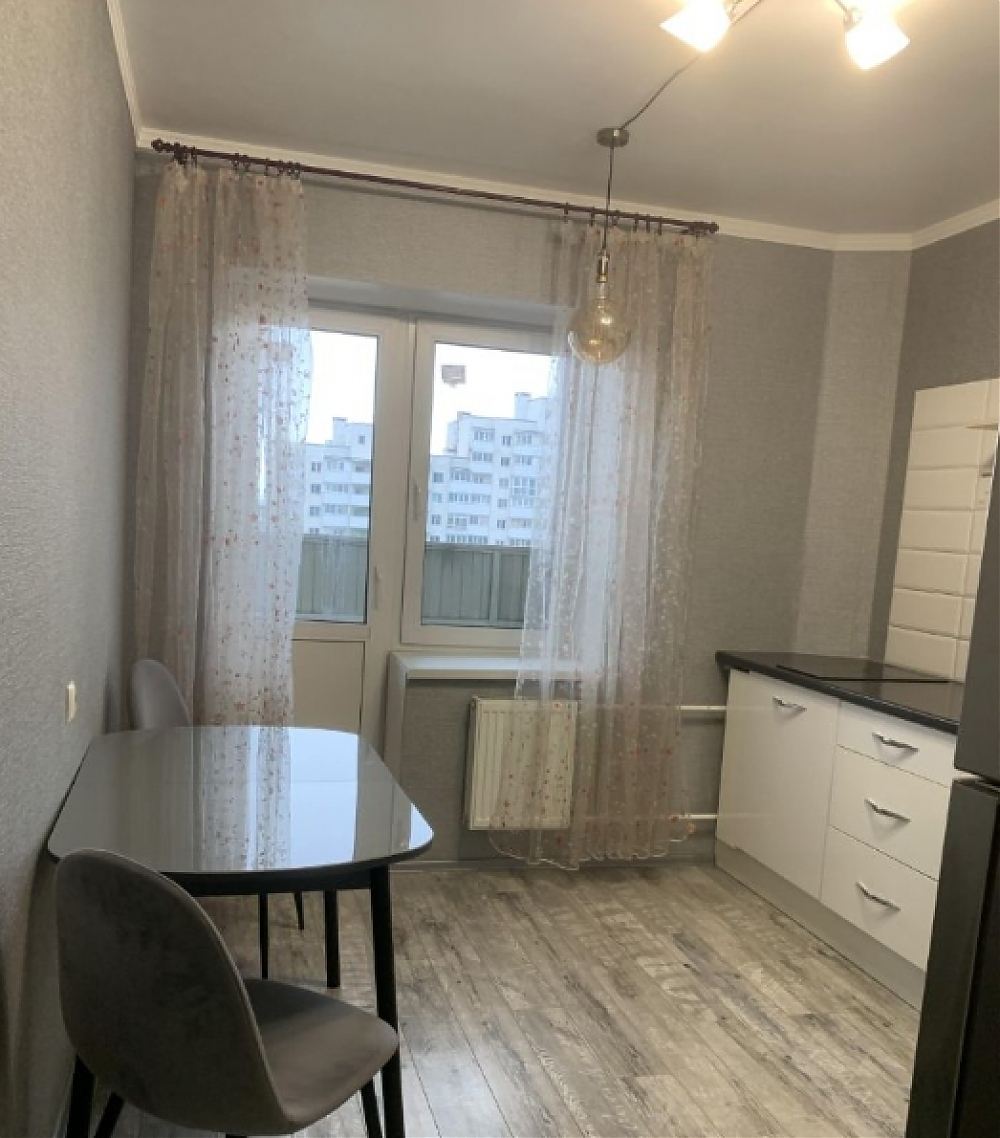 Сдаётся уютная и светлая однокомнатная квартира в современном доме 2017 года постройки. Общая площадь квартиры составляет 37.6 кв. м, из которых 20 кв. м — жилая зона и 10 кв. м занимает кухня. Квартира расположена на 15 этаже 25-этажного дома. Дом оборудован двумя пассажирскими и одним грузовым лифтами, а также наземной парковкой для вашего удобства. В квартире сделан ремонт. В комнате и на кухне есть вся необходимая мебель. Кухня оснащена холодильником и стиральной машиной, а в ванной комнате установлен тропический душ. Окна квартиры выходят во двор, что обеспечивает тишину и спокойствие для комфортного проживания. Дом расположен в районе с развитой инфраструктурой., возле будущей трамвайной остановки. Рядом находятся школы, детские сады и магазины. До метро "Купчино" можно добраться на автомобиле за 15 минут.