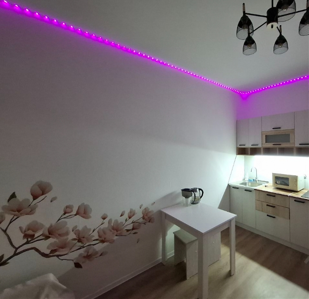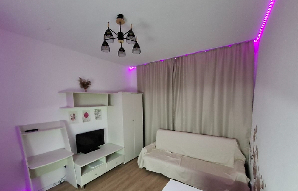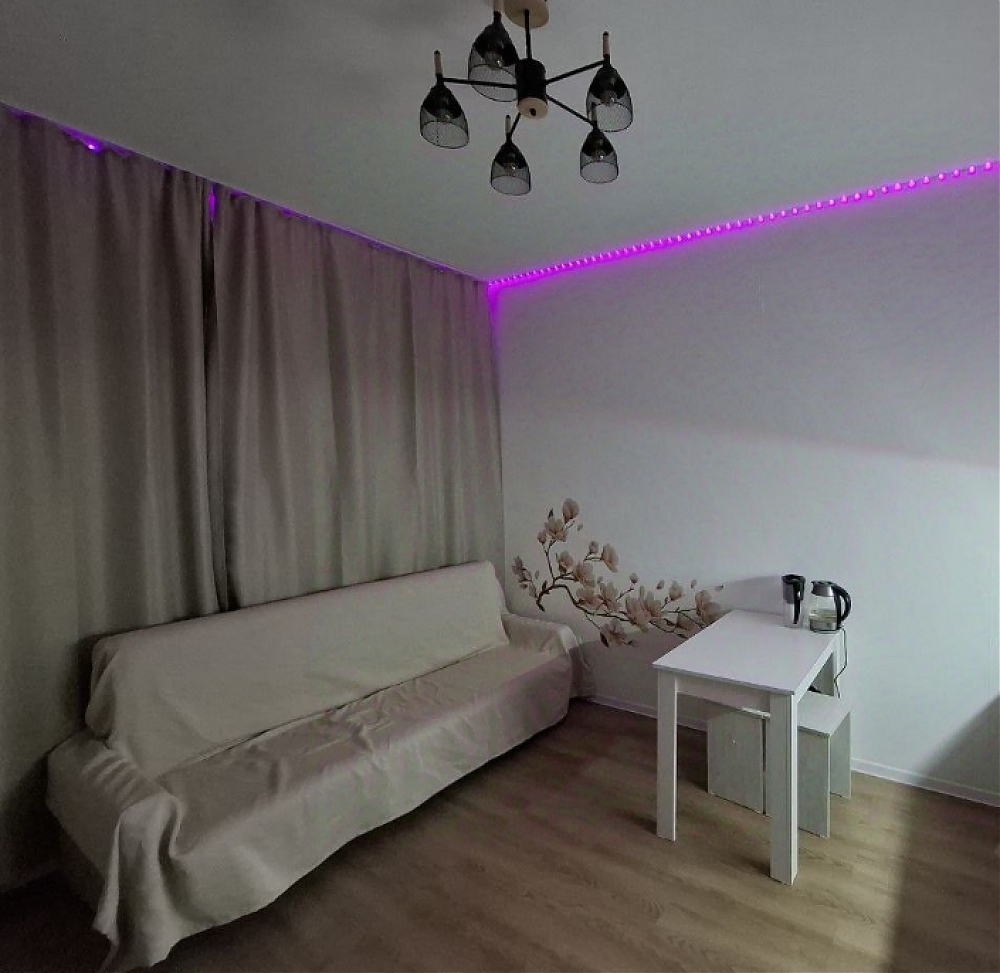 Светлая студия в стиле модерн на первом этаже. В студии имеется все для комфортной жизни; диван, холодильник, микроволновка, холодильник, телевизор, стиральная машинка, посуда. Студию можно будет посмотреть в начале декабря.