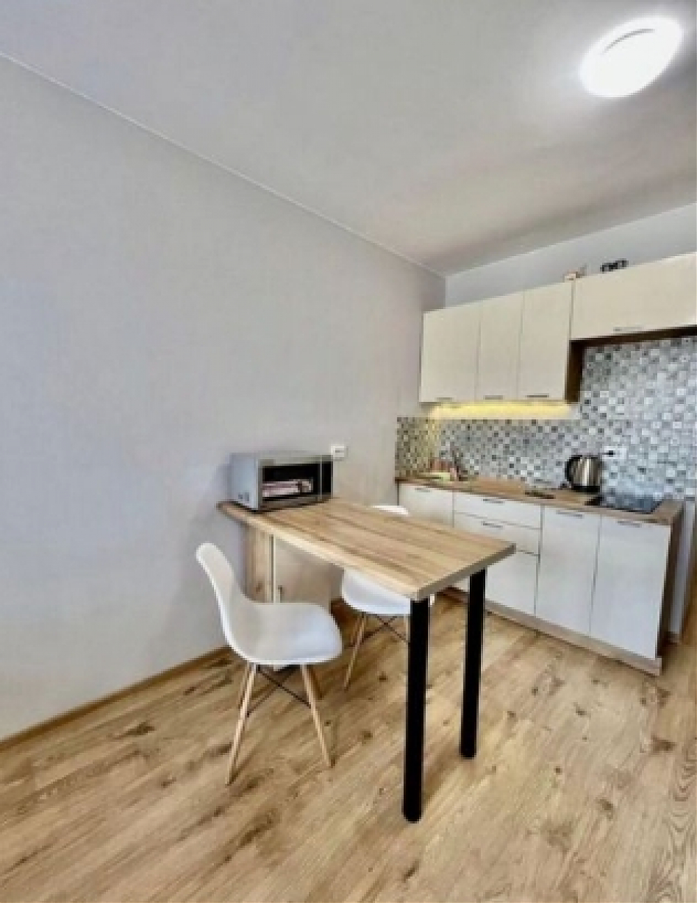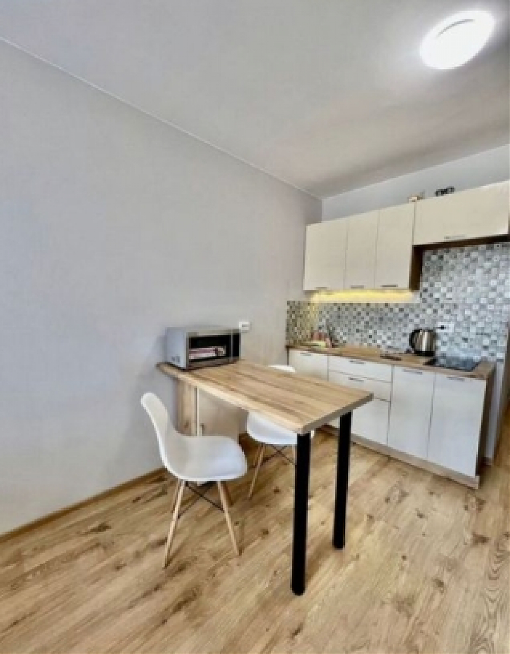 В квартире сделан качественный ремонт, все готово для комфортного проживания. Есть вся необходимая мебель и техника: холодильник, электроплита на 2 комфорки, микроволновая печь и стиральная машина.