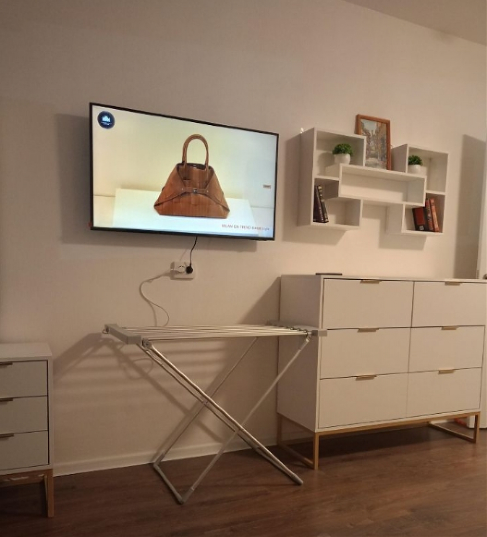Сдается стильная cтудия в новом доме от собственника без комиссии на срок от 6 месяцев. Проживанием с питомцем (маленькая собачка) обговариаается дополнительно. В квартире есть всё необходимое для жизни: диван Ascona, смарт ТВ Samsung, микроволновая печь LG, холодильник Liebherr ( небольшой, но вместительный), стиральная машина, индукционная плита.