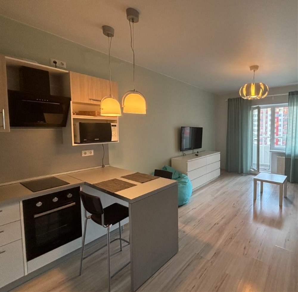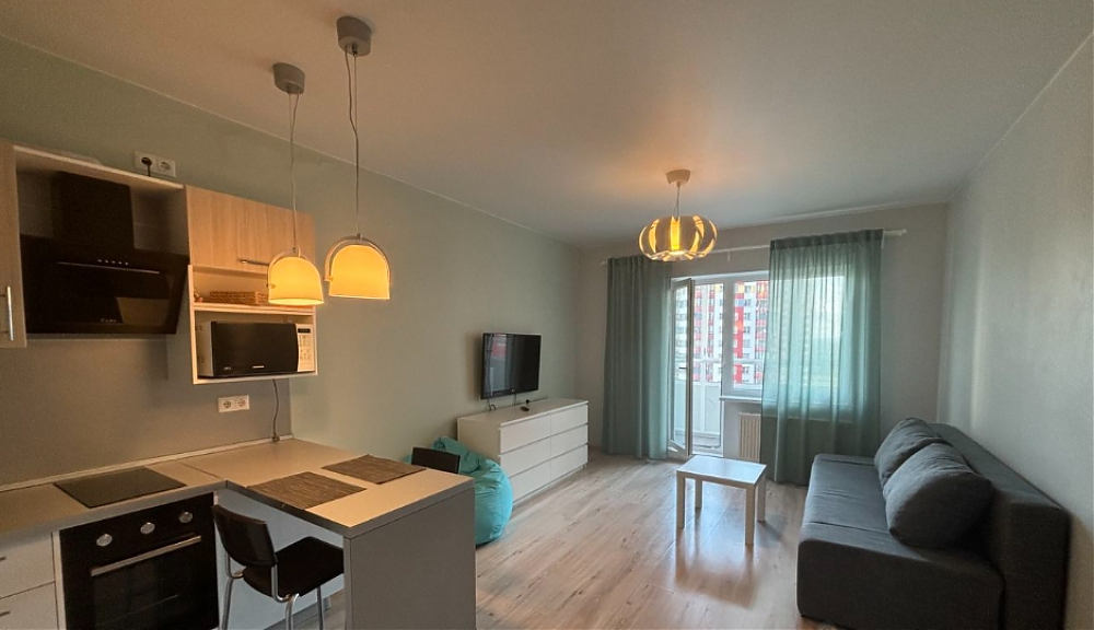 Сдам отличную видовую студию .Оснащена всем необходимым для жизни: новый раскладной диван, 2 шкафа- купе, телевизор, холодильник, стиральная машина, микроволновая печь, электрочайник, кухонная утварь и посуда. проведён интернет. квартира тихая. Сдаётся аккуратным арендаторам без вредных привычек на длительный срок.