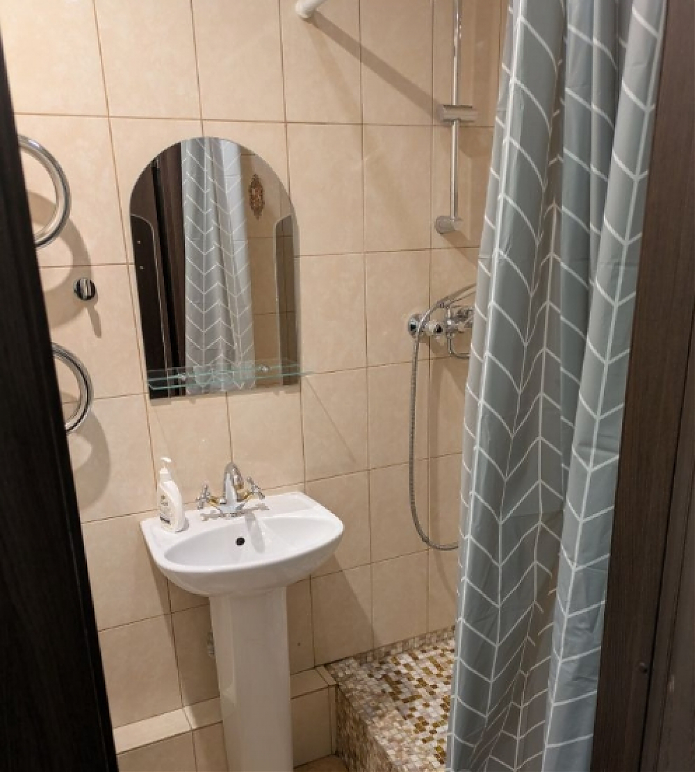 В квартире сделан косметический ремонт, что создает приятную атмосферу для жизни. В комнате и на кухне есть необходимая мебель. Кухня оснащена холодильникоми и стиральной машиной, а в ванной комнате оборудована душевая . Окна квартиры выходят во двор, что обеспечивает тишину и спокойствие. Высота потолков — 2,5 метра, а также имеется балкон, где можно отдохнуть или устроить мини-сад.