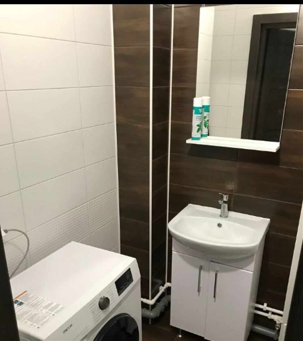 Для проживания имеется всё необходимое: холодильник, диван, плита, микроволновая печь, стиральная машина, шкафы для хранения вещей и одежды.