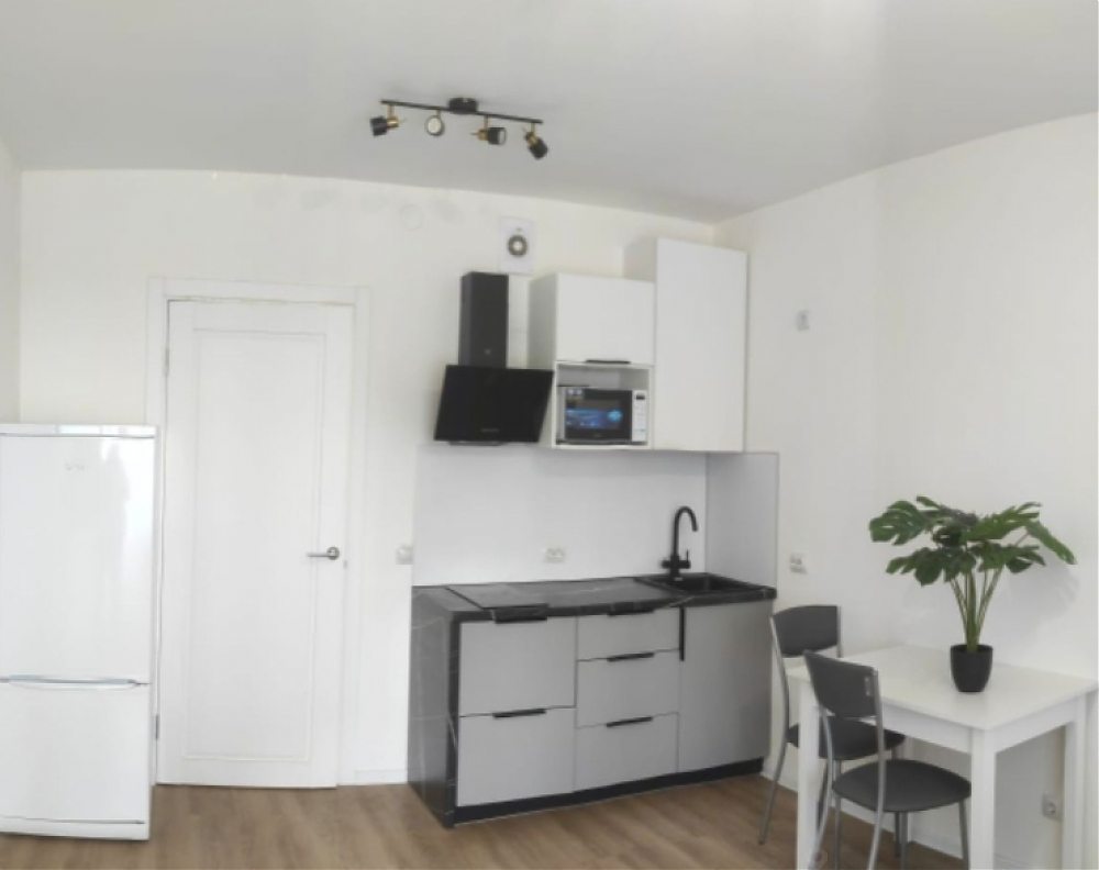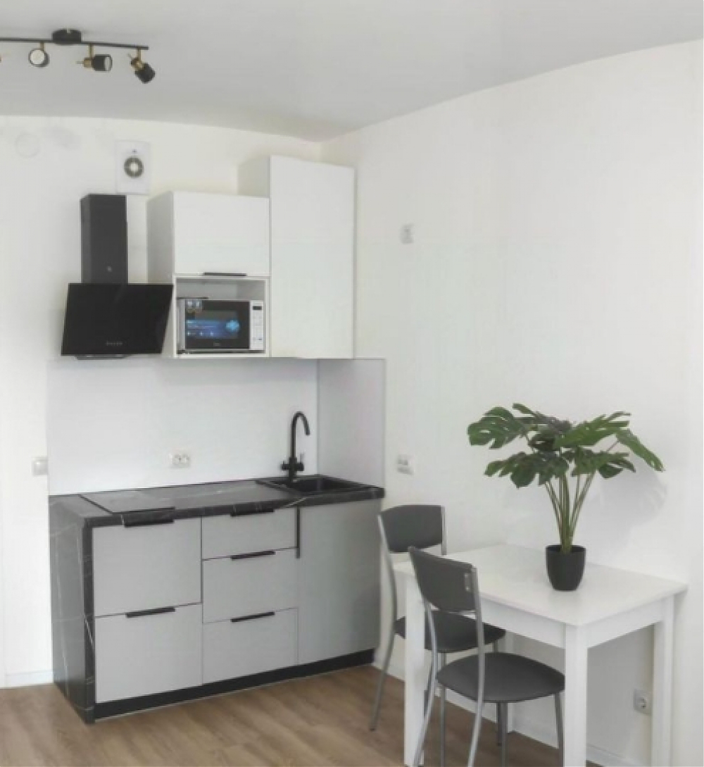 Студия полностью готова для комфортного проживания. В помещении выполнен современный ремонт, установлена вся необходимая мебель и техника