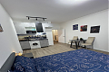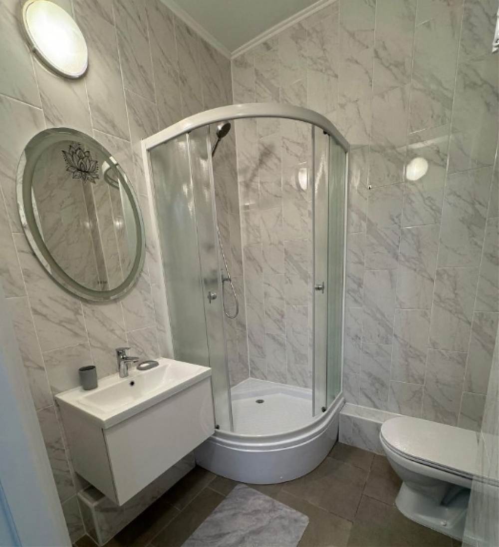В квартире сделан евроремонт, обстановка продумана до мелочей — есть вся необходимая мебель как на кухне, так и в жилой зоне. Кухня площадью 5 кв. м оборудована современной техникой: холодильником и стиральной машиной. В ванной комнате установлена душевая кабина, совмещённый санузел добавляет удобства. Дом оснащён пассажирским и грузовым лифтами, что удобно для переезда и в повседневной жизни. На территории дома предусмотрена наземная парковка. Инфраструктура района развита: поблизости находятся школы, детские сады, клиники и магазины. До станции метро "Улица Дыбенко" можно добраться всего за 6 минут на автомобиле.