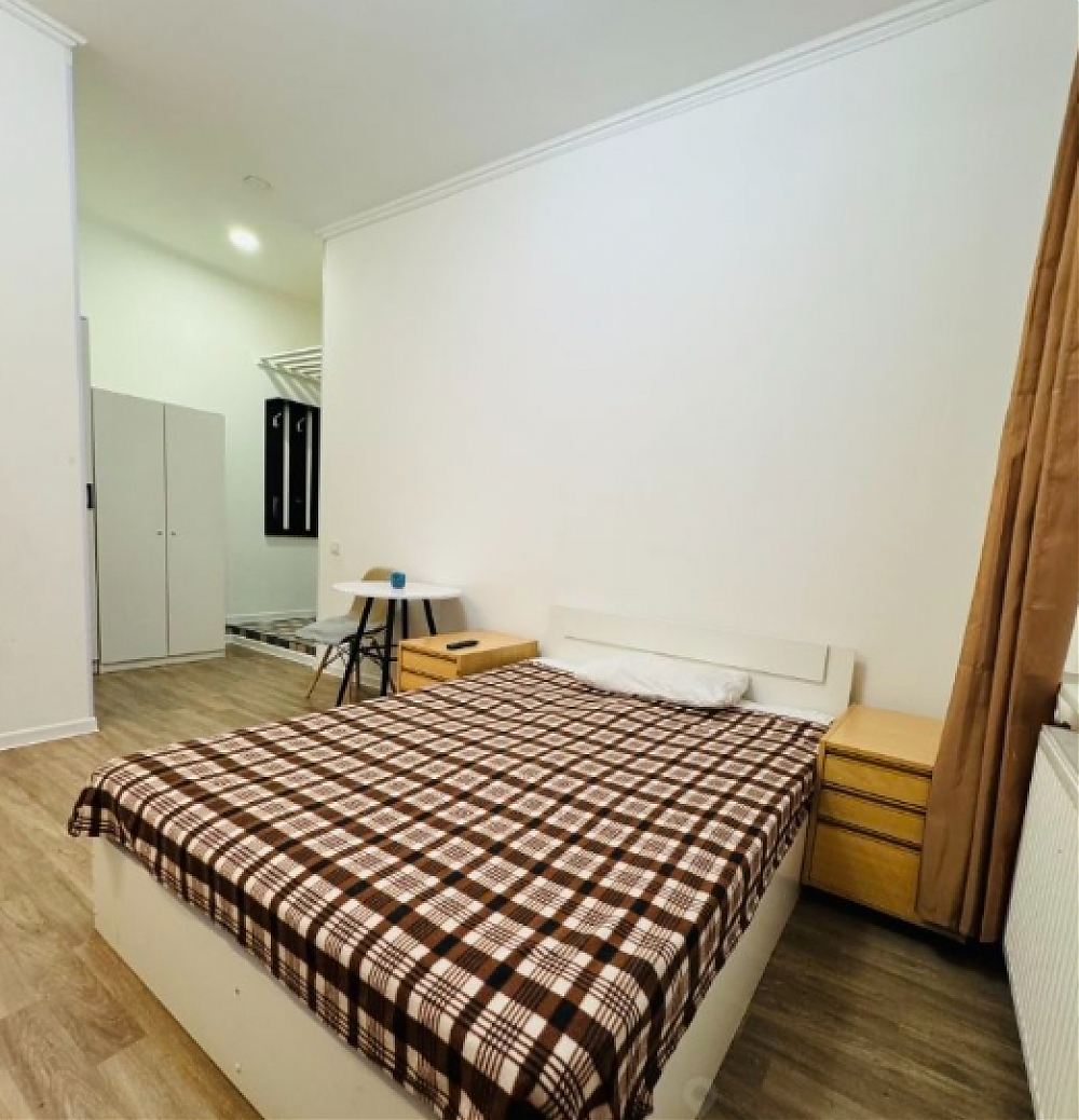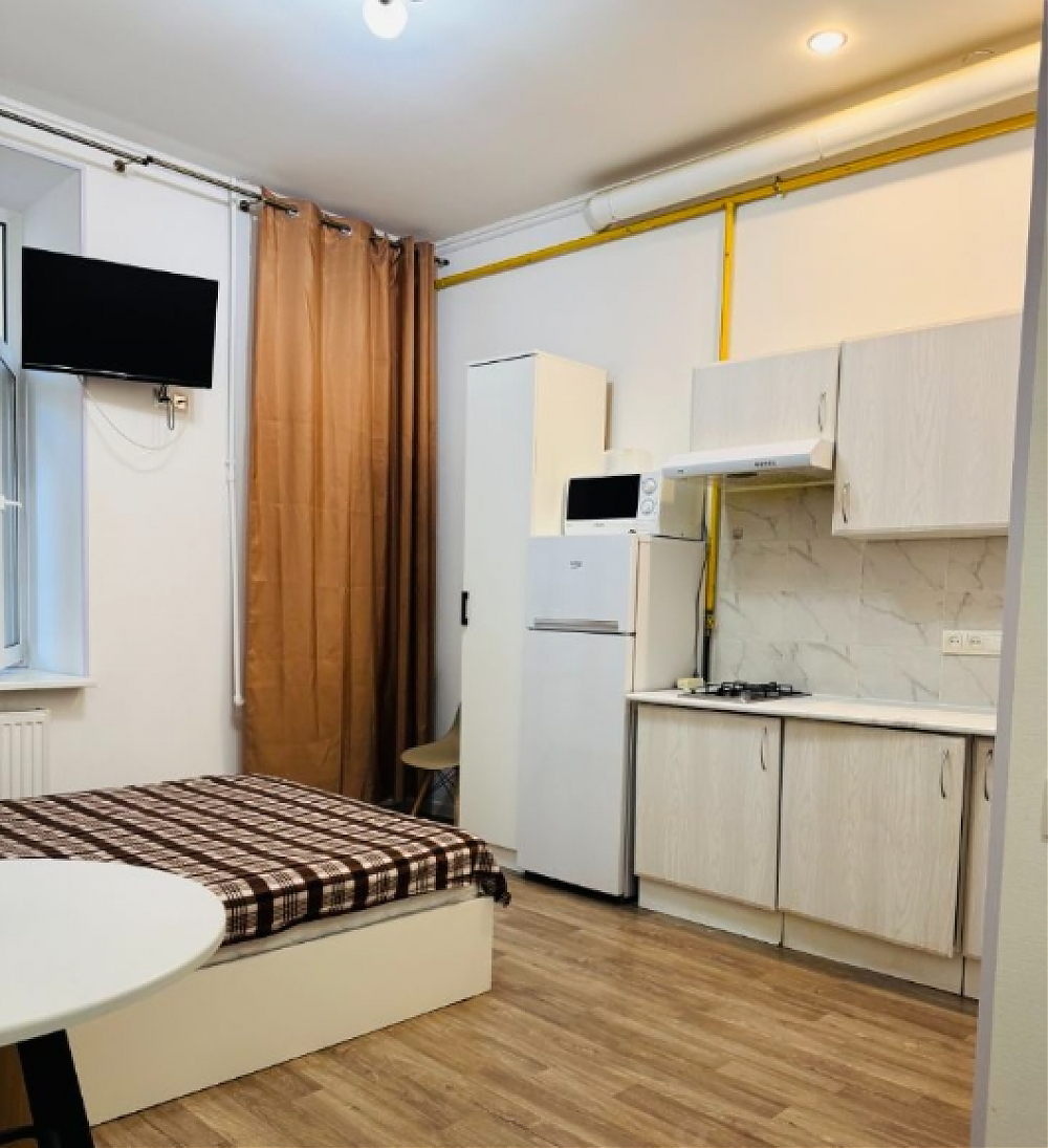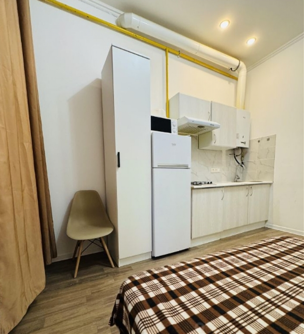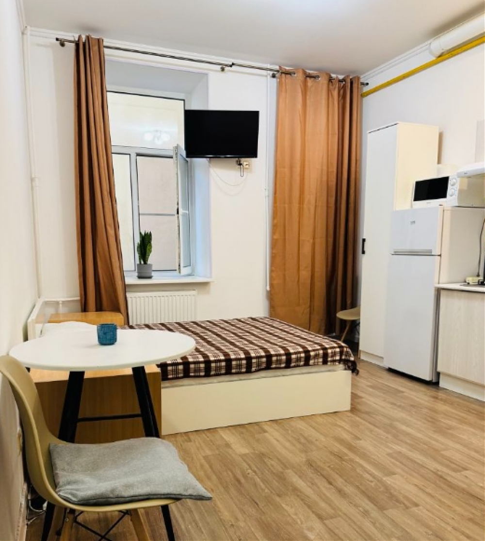 Сдаю студию на длительный срок. Минимум на год. Студия с современным ремонтом на втором этаже кирпичного дома. В квартире выполнен евро ремонт, что создает атмосферу комфорта и уюта. Жилая зона включает в себя кровать, шкафы и стол.