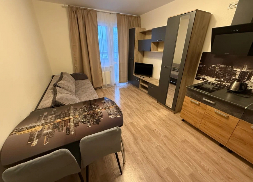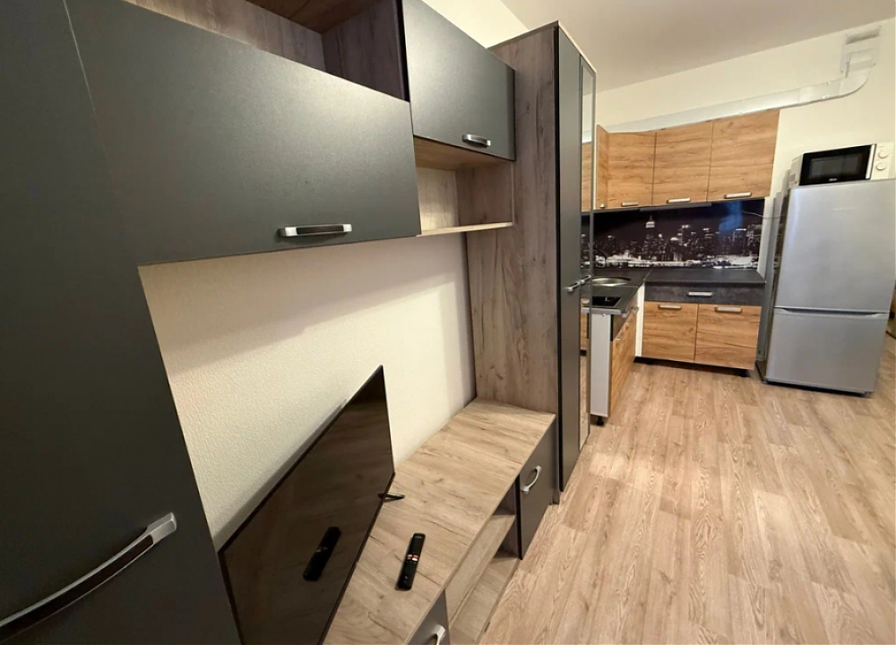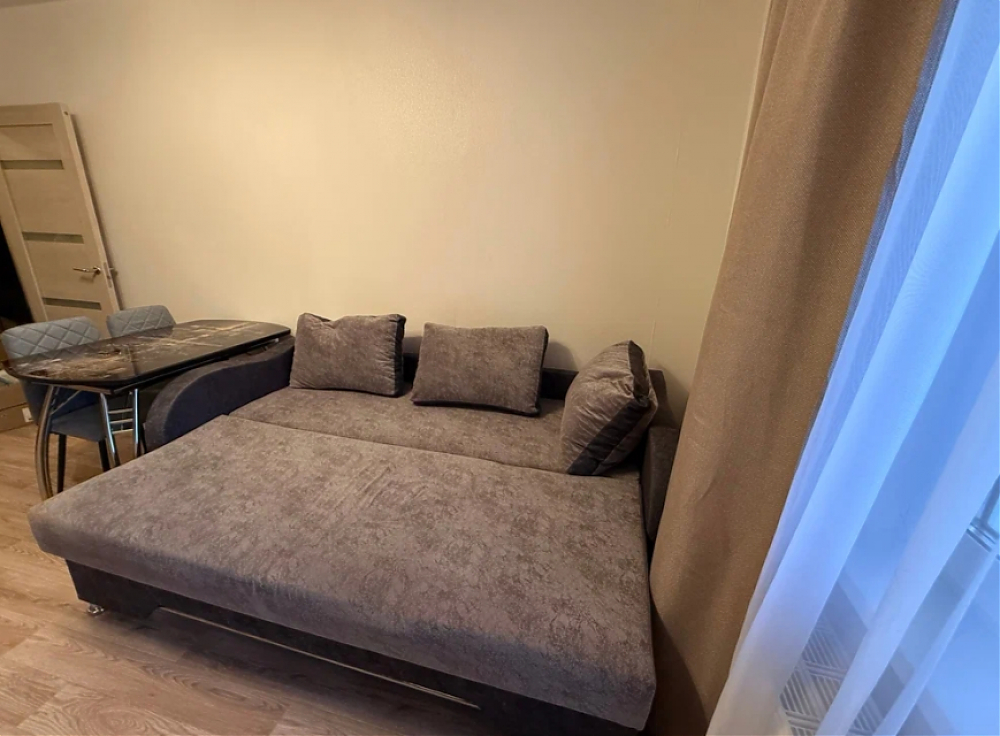 В квартире есть все необходимое: мебель и техника. Оборудованная кухня, столы и стулья, холодильник, микроволновка, стиральная машина, шкаф в прихожей, раскладной диван.