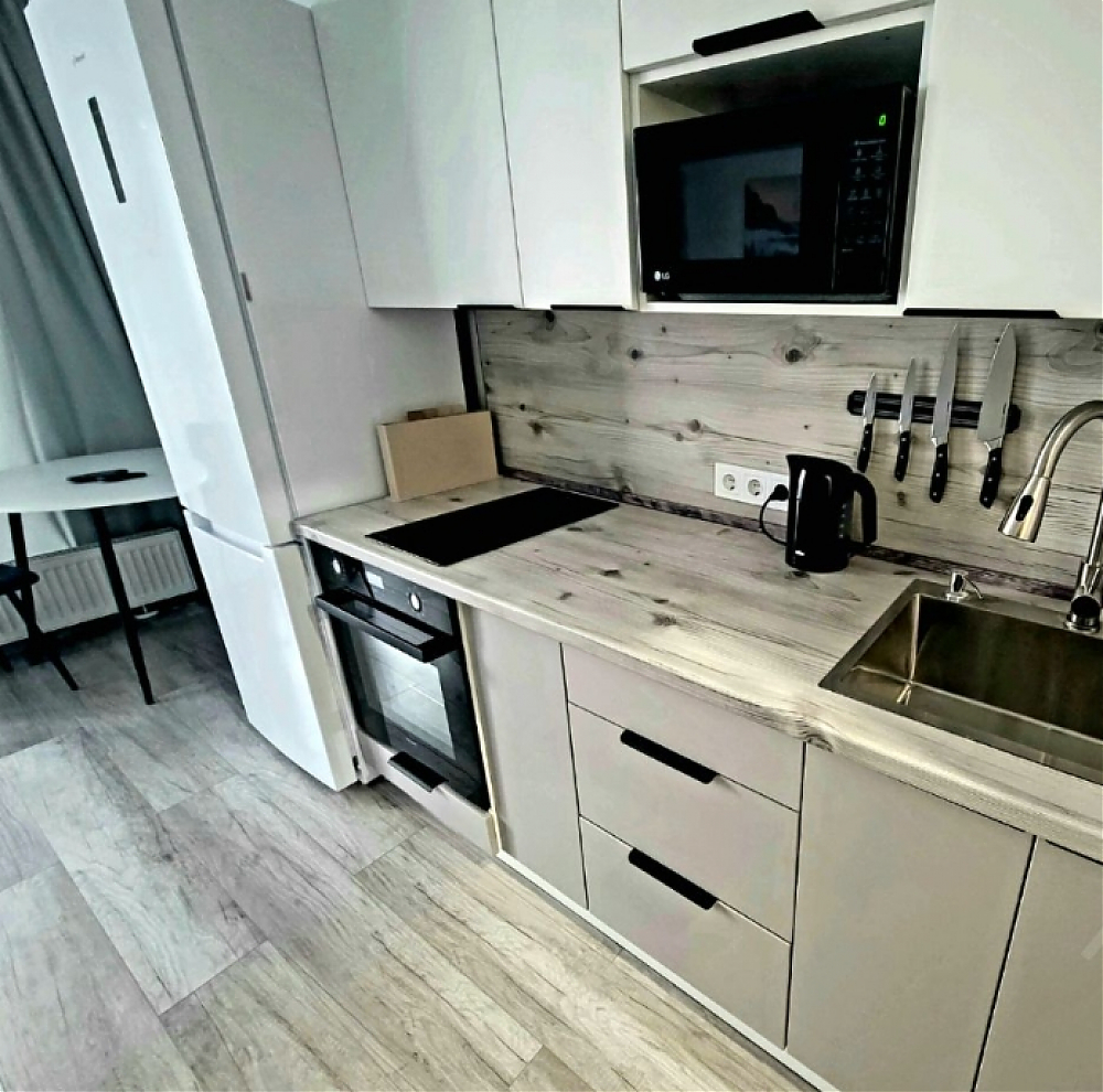 Сдаётся уютная квартира- студия в ЖК бизнес класса "Дефанс" Сдаётся на долгий срок без детей и животных Новый ремонт, оборудована мебелью и бытовой техникой (варочная панель, духовка, микроволновая печь, холодильник, стиральная машина, чайник, телевизор с приставкой, пылесос). Двехспальная кровать, большой, вместительный шкаф, кухня, стол, стулья, прикроватные тумбочки, прихожая. Посуда, столовые приборы, разделочные доски и ножи, 1 комплект постельного белья, одеяло, 2 подушки также имеются.