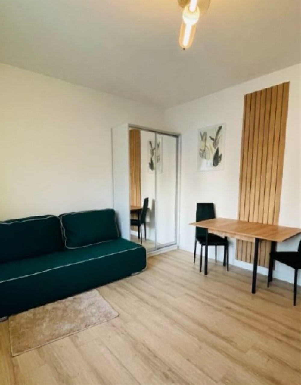 Сдаётся уютная студия площадью 22 кв. м на втором этаже нового десятиэтажного дома, построенного в 2024 году. Всего в доме один пассажирский и один грузовой лифт, что обеспечит удобство передвижения. Высота потолков составляет 2.7 метра, благодаря чему квартира кажется более просторной. Окна выходят во двор, поэтому в квартире всегда тихо и спокойно. Студия выполнена в современном стиле с евроремонтом. Все необходимое для комфортной жизни уже есть: полностью оборудованная кухня с мебелью и техникой, включая холодильник и стиральную машину. В комнате также есть мебель. В ванной комнате установлена душевая кабина, что экономит пространство и позволяет быстро освежиться.
