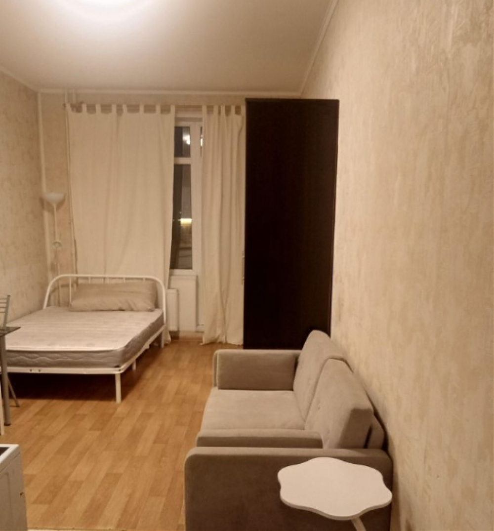 Студия расположена в ЖК Современник на углу Ленинского проспекта и проспекта Народного ополчения. Вид из лоджии на высотное здание Лидер Тауэр и Ленинский проспект. Имеется большой вместительный шкаф, удобная кровать 140 на 200, диван, небольшая кухня, холодильник, электроплита, микроволновая печь, необходимая посуда, стиральная машина автомат, утюг, стеклянный стол, табуретки, стулья, журнальный столик, торшер, вытяжка, телевизор. В доме имеются магазины, аптеки, кафе, парикмахерская, пункты доставки, стоматология, детский сад. Рядом остановка общественного транспорта на Ленинском пр., до метро Ленинский проспект 7 минут пешком.
