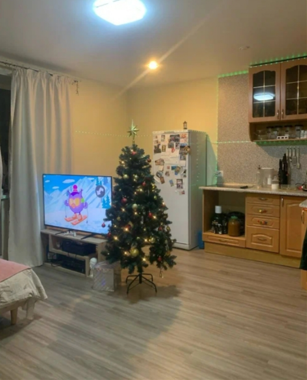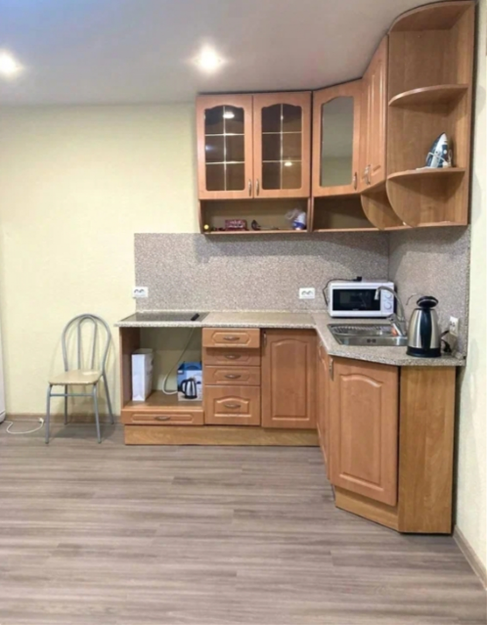Просторная квартира-студия новая, проживали в ней 2 года одна пара. Из техники есть все необходимое: холодильник, стиральная машина, плита, чайник, микроволновая печь, роутер (Wifi подключен). Большой застекленный балкон (лоджия). В обеденной зоне установлен большой кухонный гарнитур, стол, стулья. В санузле установлена ванная, туалет, тумба, зеркало, полотенцедержатель (на фото не отражен, так как установили после фото). Посуда, полотенце, всё необходимое для уборки квартиры также есть. Постельное белье, подушки, одеяло есть. Территория дома закрытая, есть охраняемая бесплатная парковка, тихий, уютный двор.