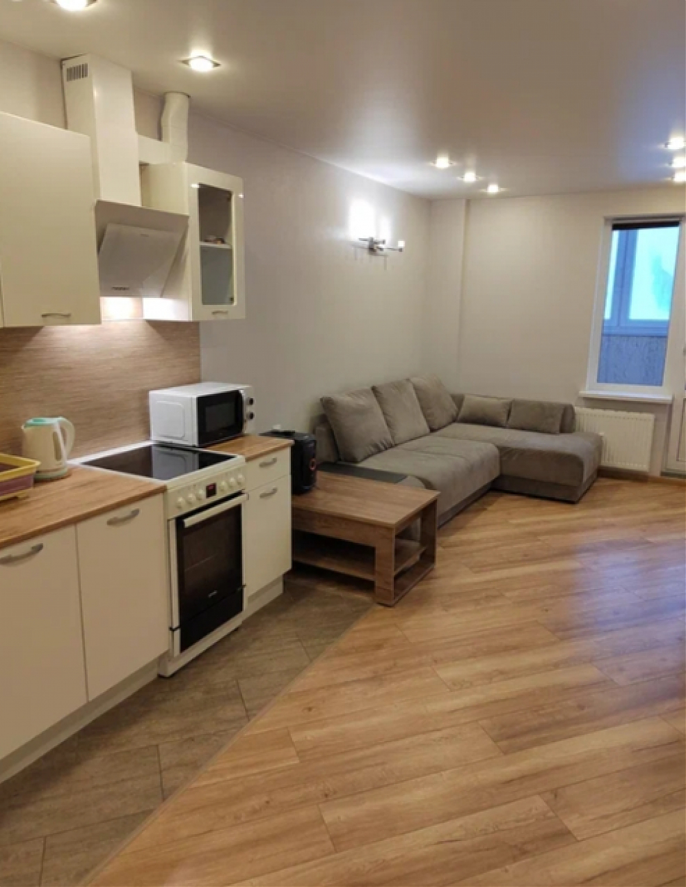 Сдаётся студия с отличным видом. Окна выходят в тихий, уютный двор. Общая площадь 25 кв.м. Квартира расположена на 6 этаже 19-ти этажного монолитного дома. До метро Девяткино - 20 мин. пешком, рядом с домом остановка маршрутного автобуса до метро. Застеклённая, утепленная лоджия. Совмещенный санузел. В санузле стоит чугунная ванна, смесители HansGrohe. Плита стеклокерамика. Микроволновая печь. Чайник. Есть сушилка для белья. Раскладной диван. Стол со стульями. Переносные вешалки. Отопление регулируется.