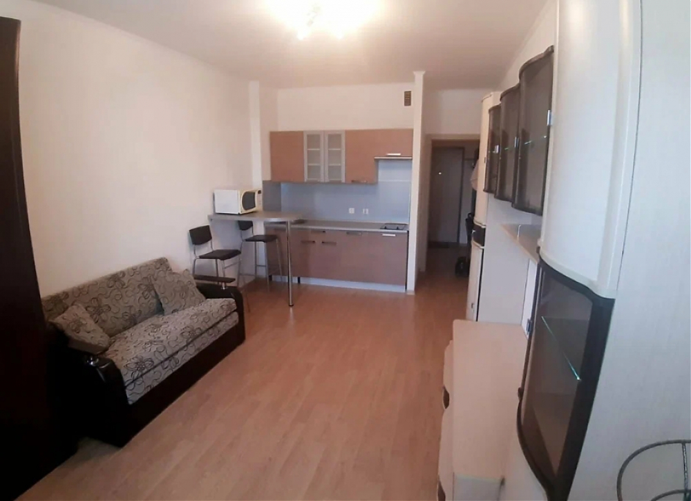 Сдается уютная квартира-студия с большой застекленной лоджией. Все как на фото: чистая, аккуратная, есть все необходимое для жизни: кухня, электрическая варочная поверхность, микроволновка, двухкамерный холодильник, барная стойка с 2 барными стульями, диван-кровать, шкаф, стенка с комодом. В санузле установлена душевая кабина, стиральная машина. На большой застекленной лоджии установлен дополнительный комод и кофейный столик для комфортного отдыха. Уютный, жизнерадостный район, в шаговой доступности кафе, парикмахерские, магазины, во дворе дома расположен детский сад, рядом школа, Южно-Приморский парк и ТРК "ЖЕМЧУЖНАЯ ПЛАЗА".