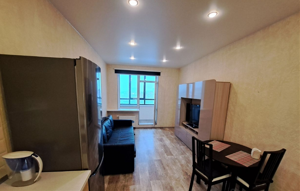 Уютная большая светлая студия с высокими потолками. Никогда не сдавалась, ремонт и технику покупали для себя. Большой Холодильник LG, посудомоечная машина, стиральная машина-автомат, телевизор, вся необходимая мебель, застекленная лоджия.