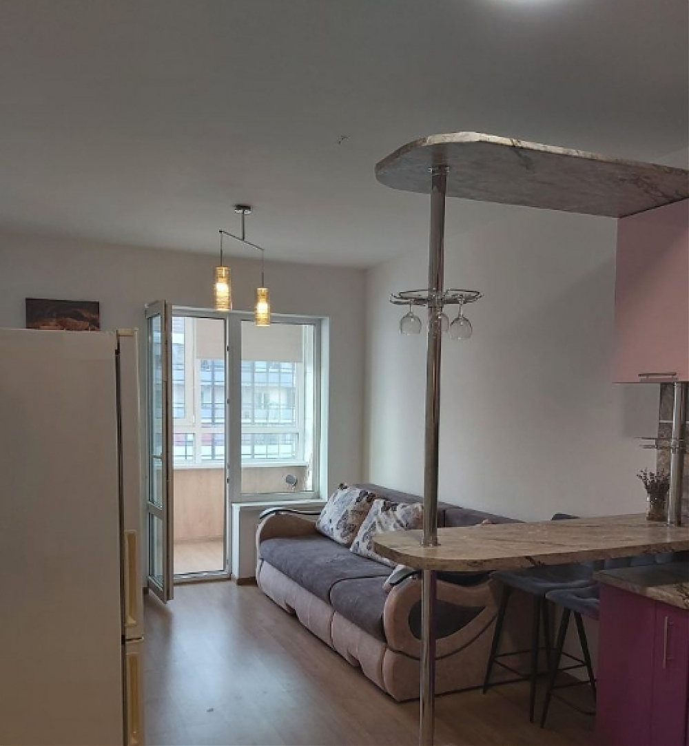 Уютная квартира-студия в хорошем состоянии ЖК Солнечный город, хороший вид из окон. Теплая. Можно дойти и до Петергофского шоссе и до пр. Ветеранов. Есть все для жизни. Посудомоечная и стиральная машина, хлодильник, микроволновая печь, плита 4 комфоркии духовка, диван.