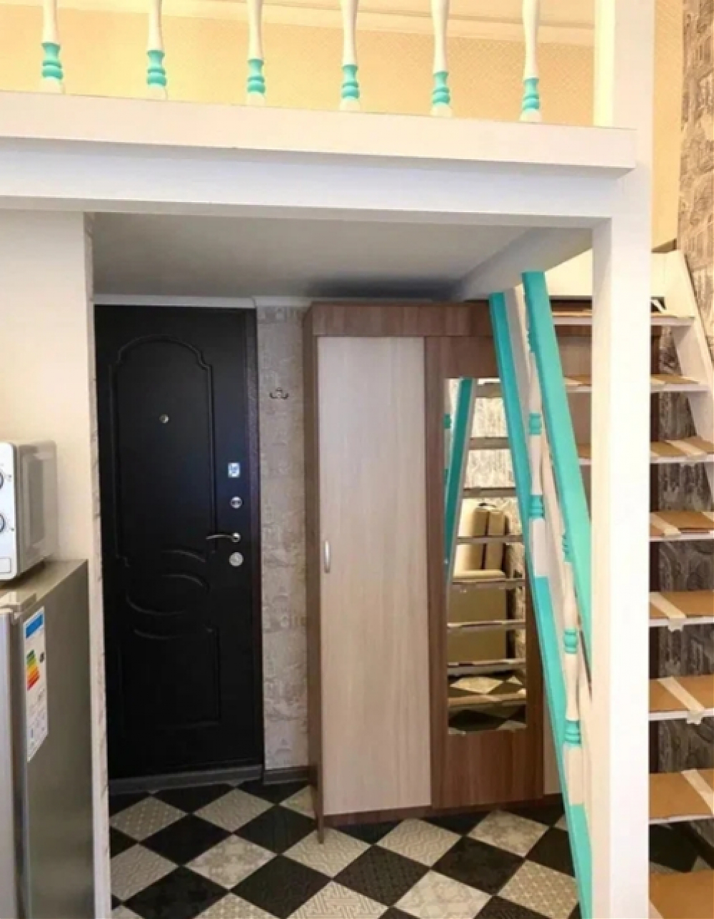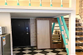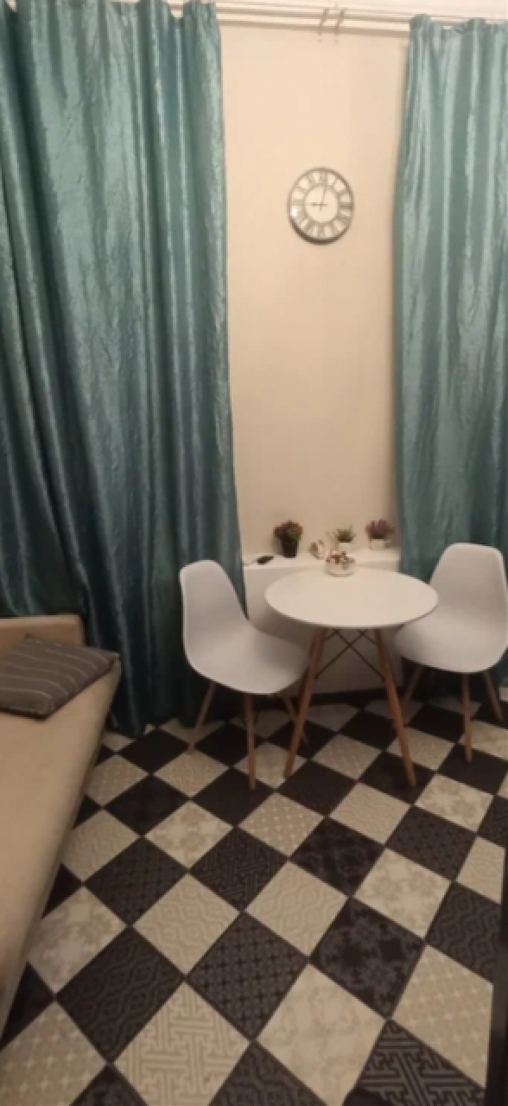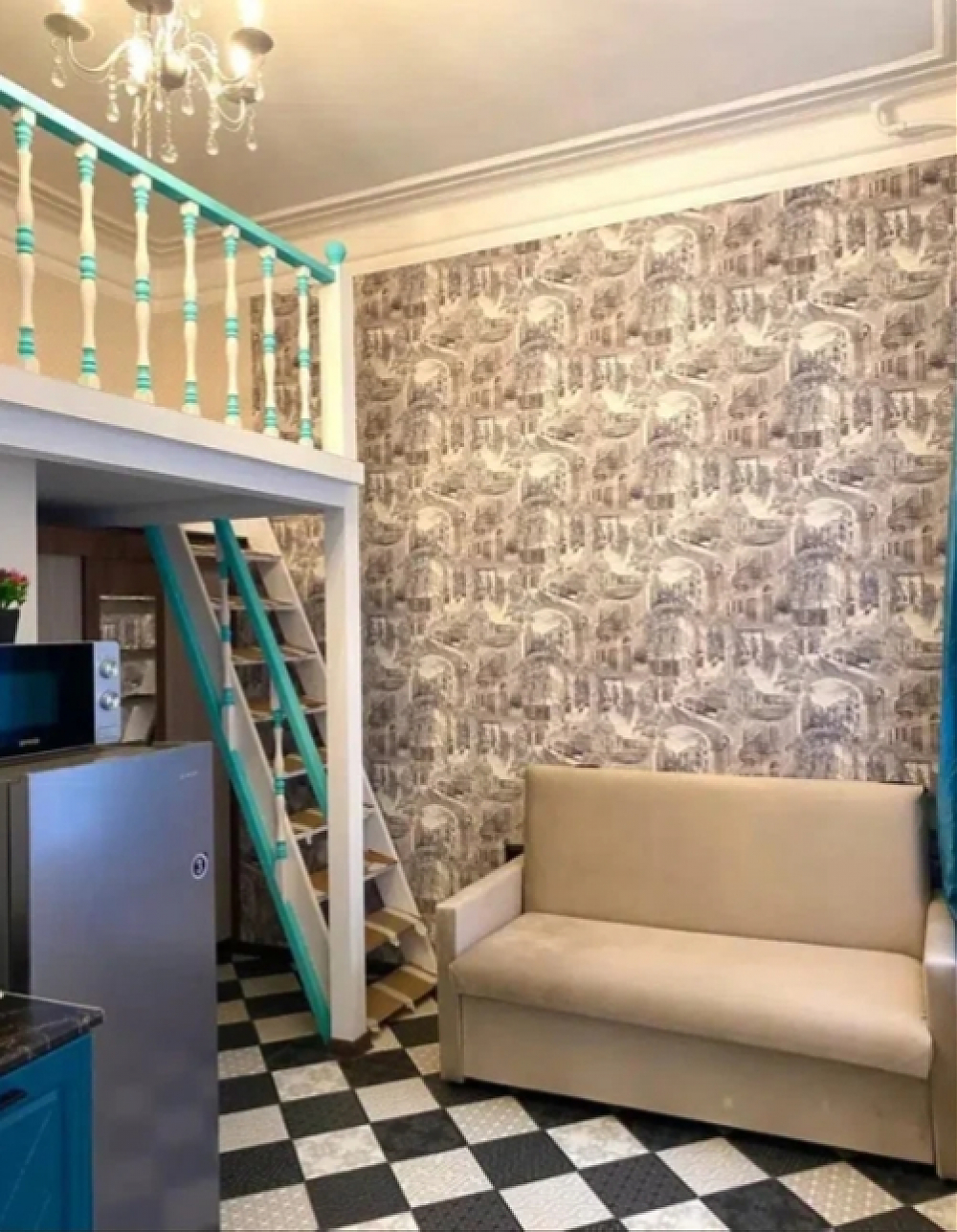 Сдается на длительный срок строго для одного человека, без животных. В студии есть диван двухместный, раскладывается, шкаф купе, стол с 2-мя стульями, комод, телевизор с приставкой, на втором этаже матрас 140*200 , тумба , сушилка, гладильная доска, на кухне плита электрическая , чайник электрический, кофеварка, микроволновка, холодильник, стиральная машина.