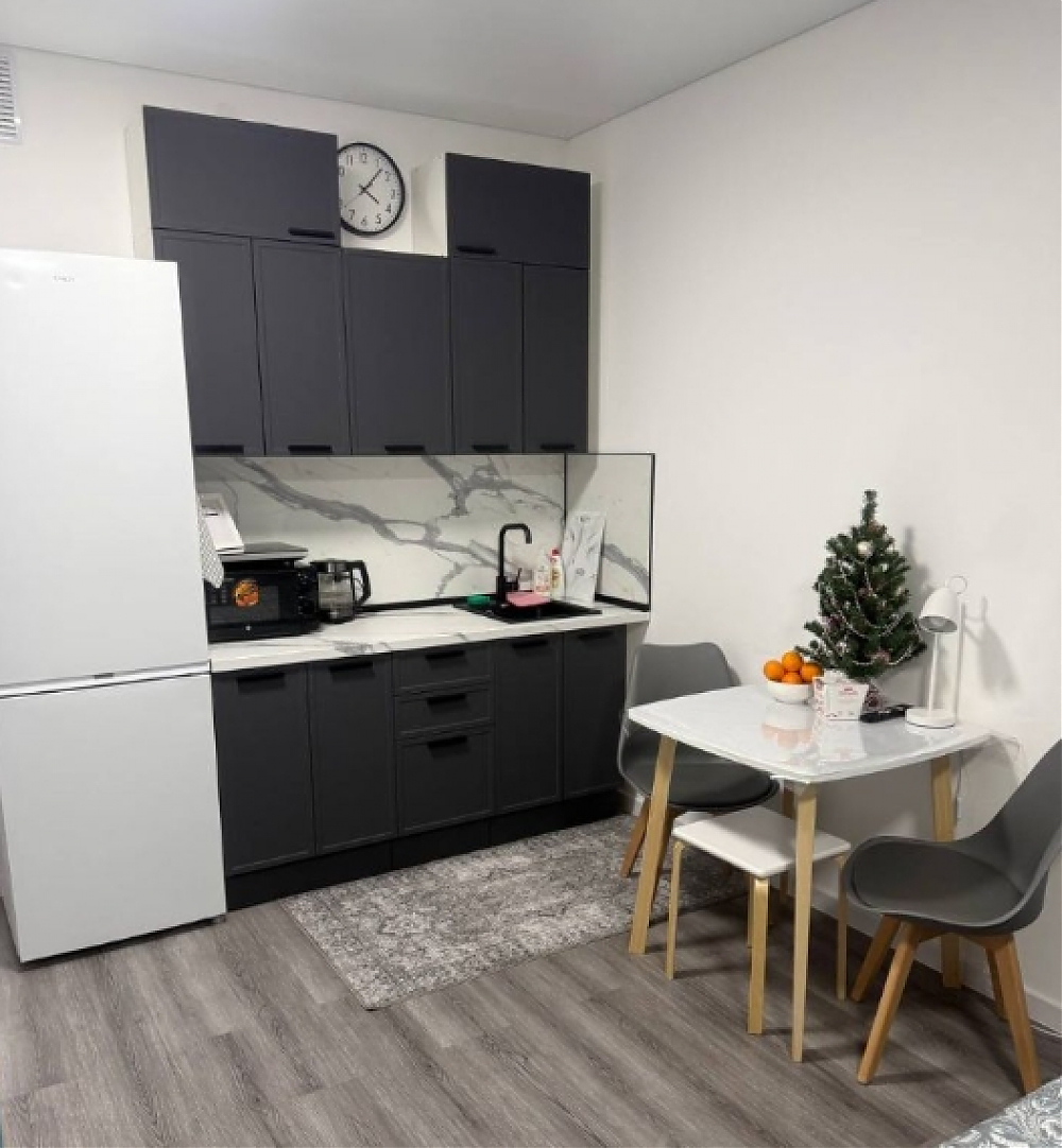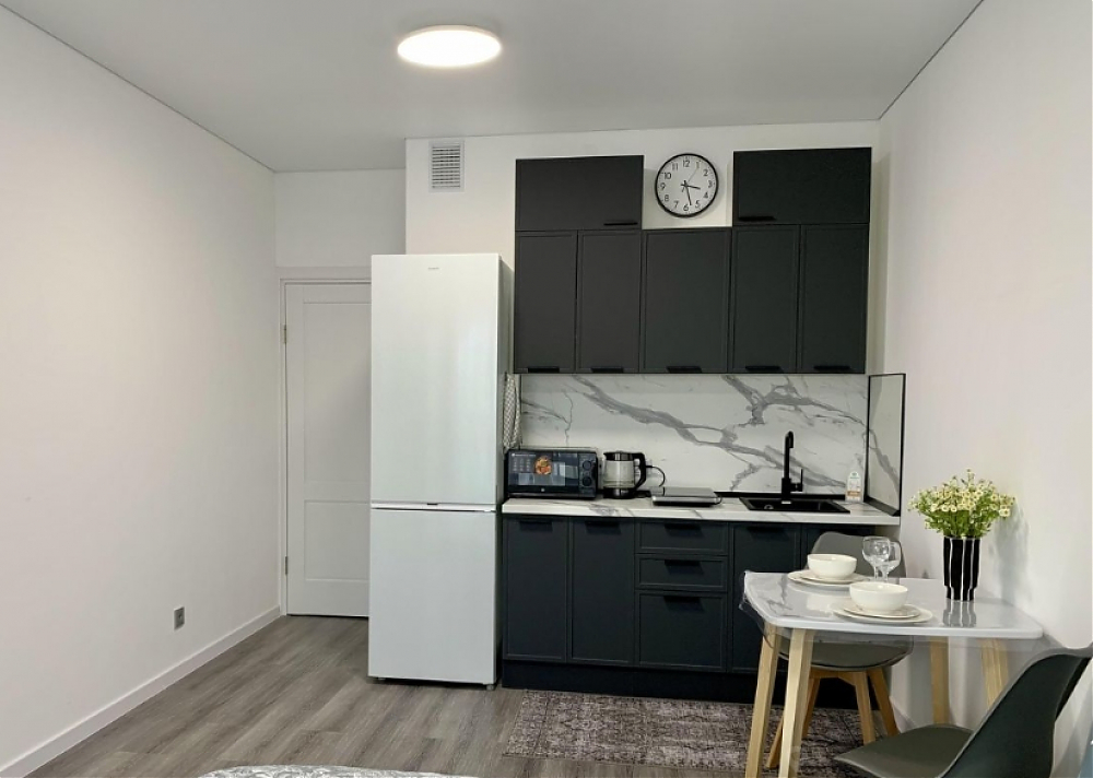Сдаётся уютная квартира-студия Грей в новом жилом комплексе в 20 минутах до площади А. Невского. Удобно добираться до Невского проспекта на прямом маршруте трамвая всего за 25 мин. Остановка в 7 мин пешком от дома. Также на трамвае за 10 мин вы доберетесь до 3-х разных станций метро: Новочеркасская, Пр. Большевиков, Дыбенко. В квартире вся меблировка и бытовая техника новая. Размещение для 1- 2 человек. Удобно для семьи с ребенком, есть отдельное спальное место раскладное кресло. Для вашего удобства: двуспальная кровать 160х200, кресло-кровать раскладное 80х190, постельное белье 100% хлопок. Портьеры блэк аут, Смарт ТВ, Wi Fi, вместительный холодильник, СВЧ-печь, эл. чайник, эл. плита, стиральная машина, утюг, гладильная доска, фен, комплект посуды, столовые приборы, бокалы для напитков, посуда для приготовления пищи. В ванной ваш ждут душевая кабинка, мягкие полотенца, гигиенические принадлежности и средства для стирки.