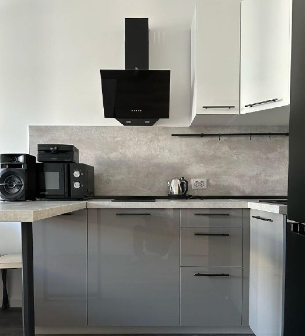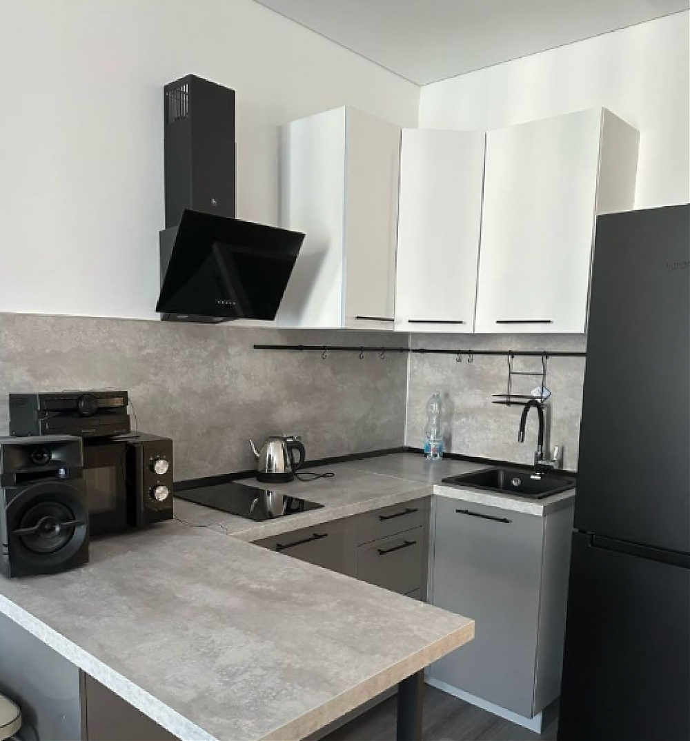 В квартире есть всё необходимое для комфортного проживания: косметический ремонт, мебель на кухне и в комнате, а также вся необходимая техника — холодильник, телевизор и стиральная машина. Санузел совмещённый, оборудован душевой кабиной. Подключён интернет, поэтому можно сразу начать пользоваться всеми благами цивилизации. Дом новый, с современными удобствами: есть мусоропровод, пассажирский и грузовой лифты. Для автовладельцев предусмотрена наземная парковка, поэтому удобно будет оставить машину рядом с домом.