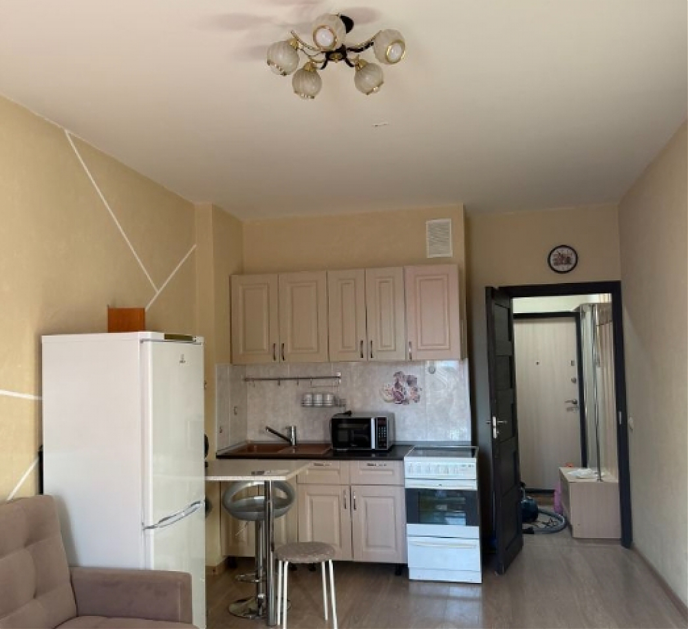 В студии выполнен косметический ремонт, есть необходимая мебель на кухне и в комнате. Из техники в вашем распоряжении холодильник и стиральная машина. В совмещённом санузле установлена душевая кабина. Балкон позволяет наслаждаться свежим воздухом. Дом находится в районе с развитой инфраструктурой. В пешей доступности расположены школы, детские сады, клиники и магазины. До метро "Проспект Большевиков" всего 20 минут пешком. Для автолюбителей предусмотрена наземная парковка.