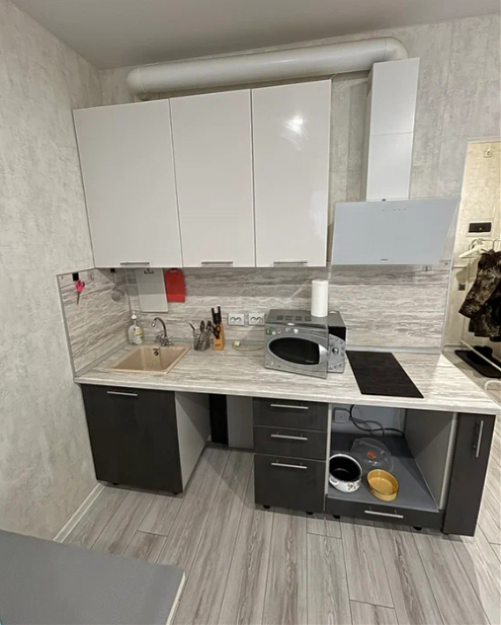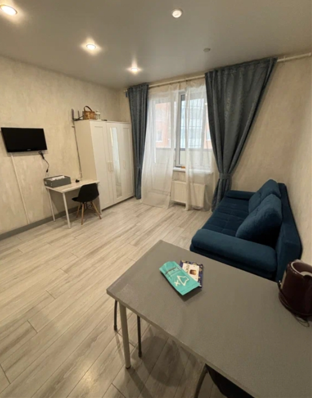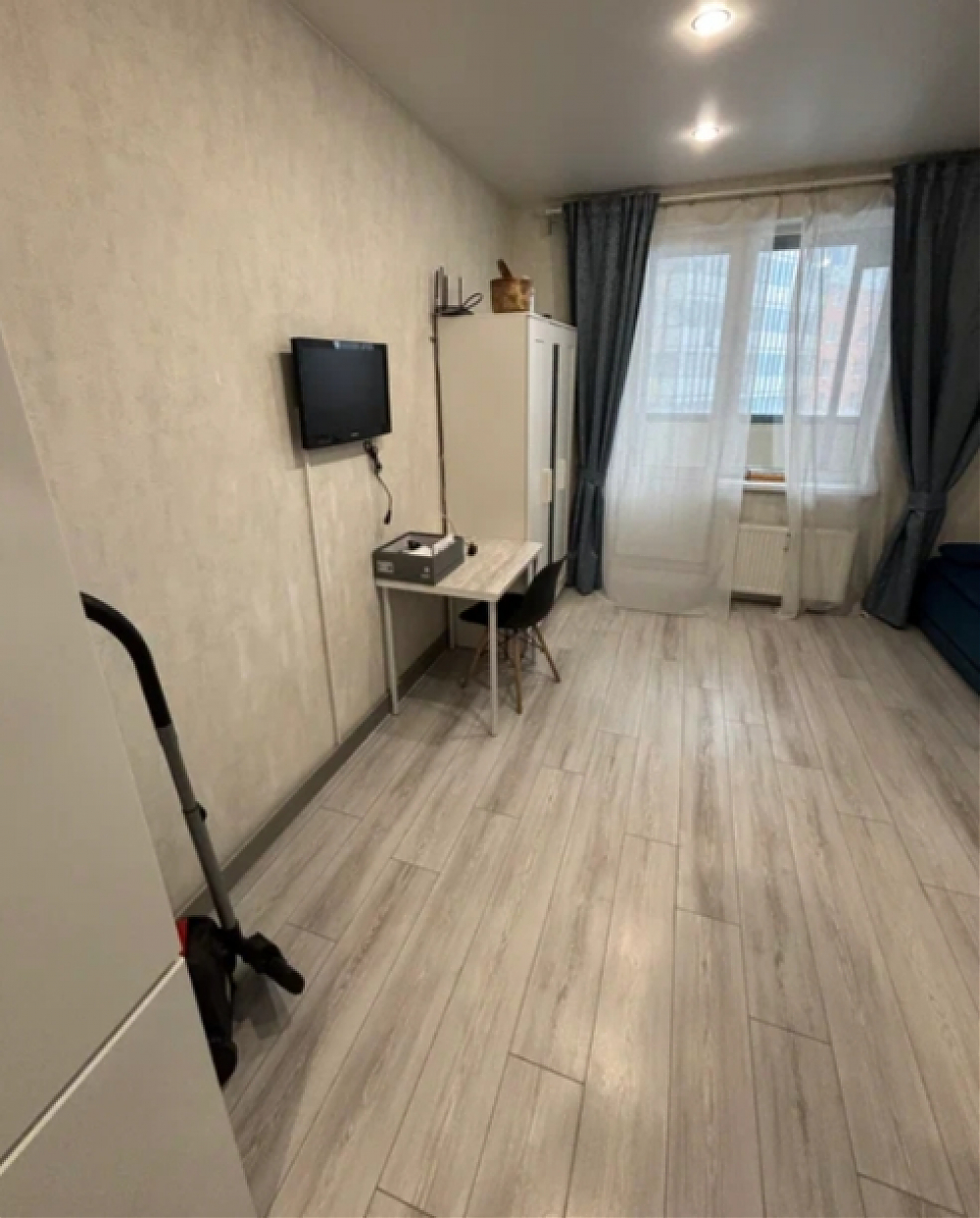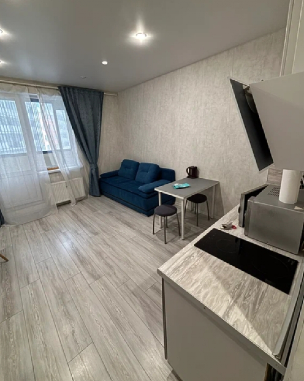 Сдаётся студия на длительный срок. Разрешено проживание с детьми и питомцами (по согласованию). Квартира находится на 13 этаже из 24, оснащена двумя пассажирскими и двумя грузовыми лифтами. Внутри есть всё необходимое для комфортного проживания: холодильник, чайник, микроволновка, индукционная плита, стиральная машина, телевизор, wi-fi, пылесос. Из мебели — шкаф, рейл для одежды, обеденный стол, рабочий стол, стул, 2 табуретки и диван. Через время докупим духовку и помудомойку. Кухня оборудована современной техникой и обеденной зоной. Санузел совмещённый. Балкон застеклён, с видом на городские пейзажи. Парковка открытая во дворе.