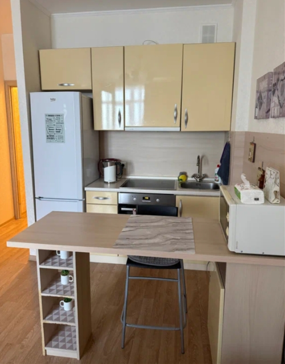 Сдается на длительный срок чистая светлая студия после ремонта в ЖК комфорт-класса "Море". Студия располагается на последнем этаже. Большая лоджия с прекрасным видом на залив и красивыми закатами. В квартире есть самое необходимое: стиральная машина, фен; холодильник, духовой шкаф и электрическая плита, микроволновка, эл.чайник, сдается с посудой (тарелки, чашки, столовые приборы); телевизор с кабельными каналами, проведен интернет. Сдается с мебелью, большой кроватью (все что указано на фото). Приятные соседи, шума и беспокойства не вызывают.