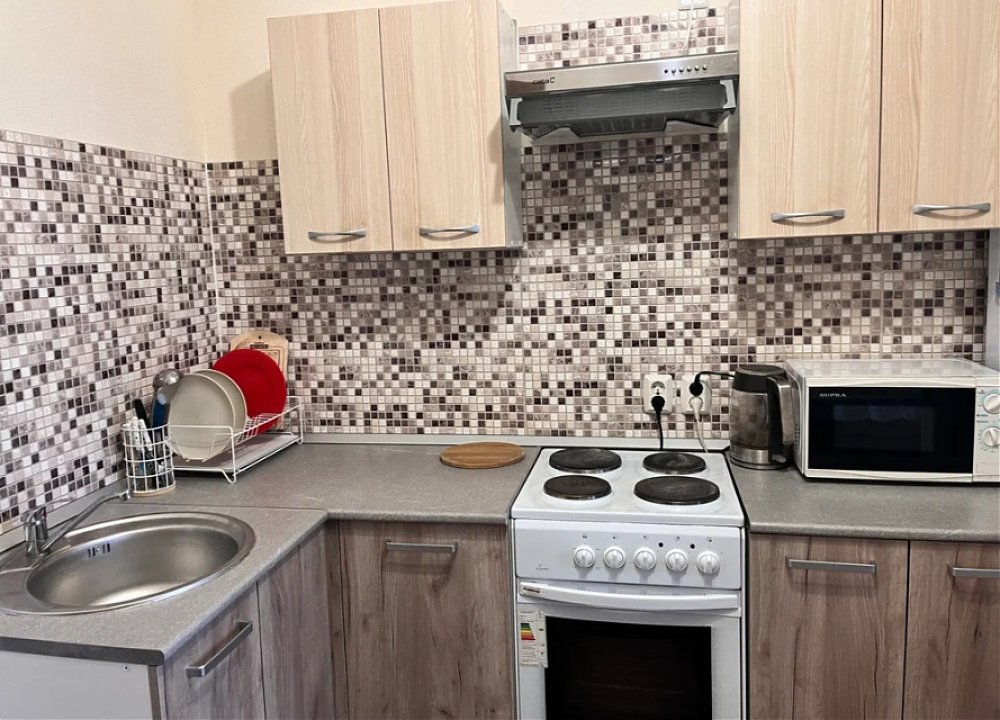Уютная современная однокомнатная квартира, с качественным ремонтом в светлых тонах. В санузле установлена ванна, приятная комната с новым удобным раскладным диваном, вместительным шкафом, встроенная мебель на кухне, оборудована всей необходимой для комфортного проживания техникой и мебелью, все подобрано в едином стиле. Будем рады видеть в качестве нанимателей одного-двух человек без животных.