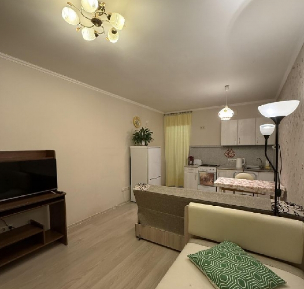 В квартире сделан косметический ремонт. Все необходимое для проживания уже есть: на кухне и в комнате установлена мебель, в ванной комнате — душевая кабина. Спальные места- двуспальный диван и односпальная тахта. Из техники в вашем распоряжении холодильник, телевизор, стиральная машина, чайник, плита. Планировка квартиры удобная, с одной лоджией, где можно наслаждаться свежим воздухом и видами, или хранить вещи.